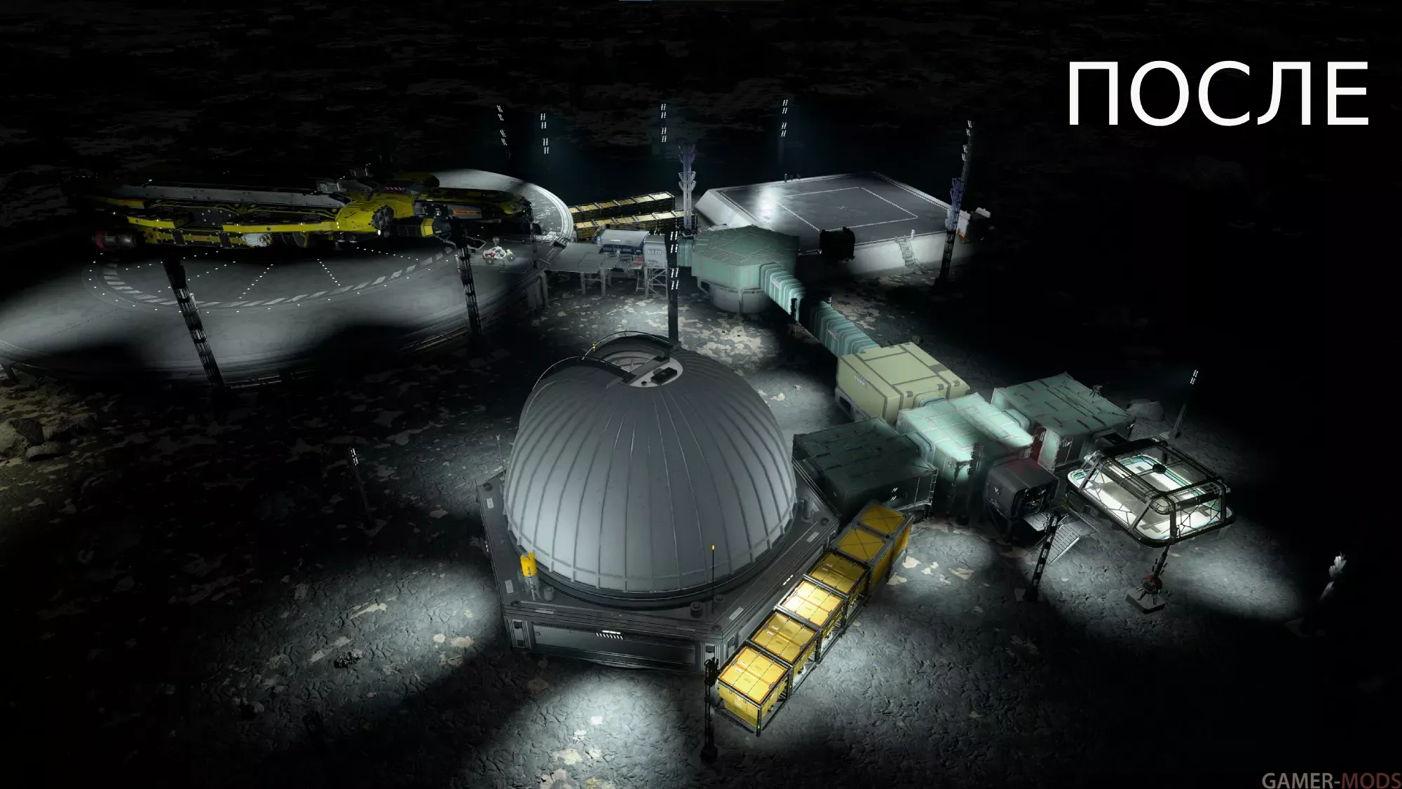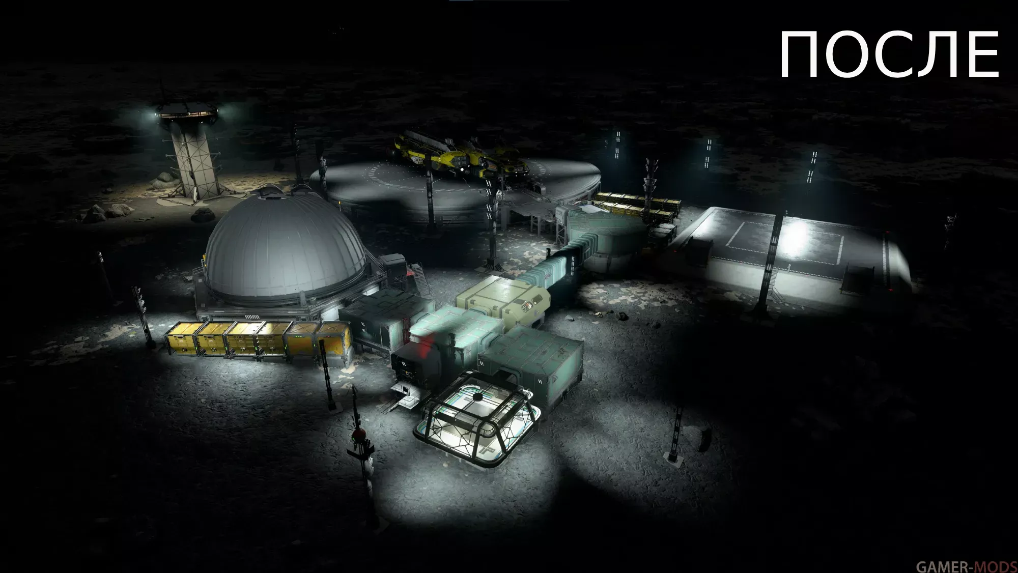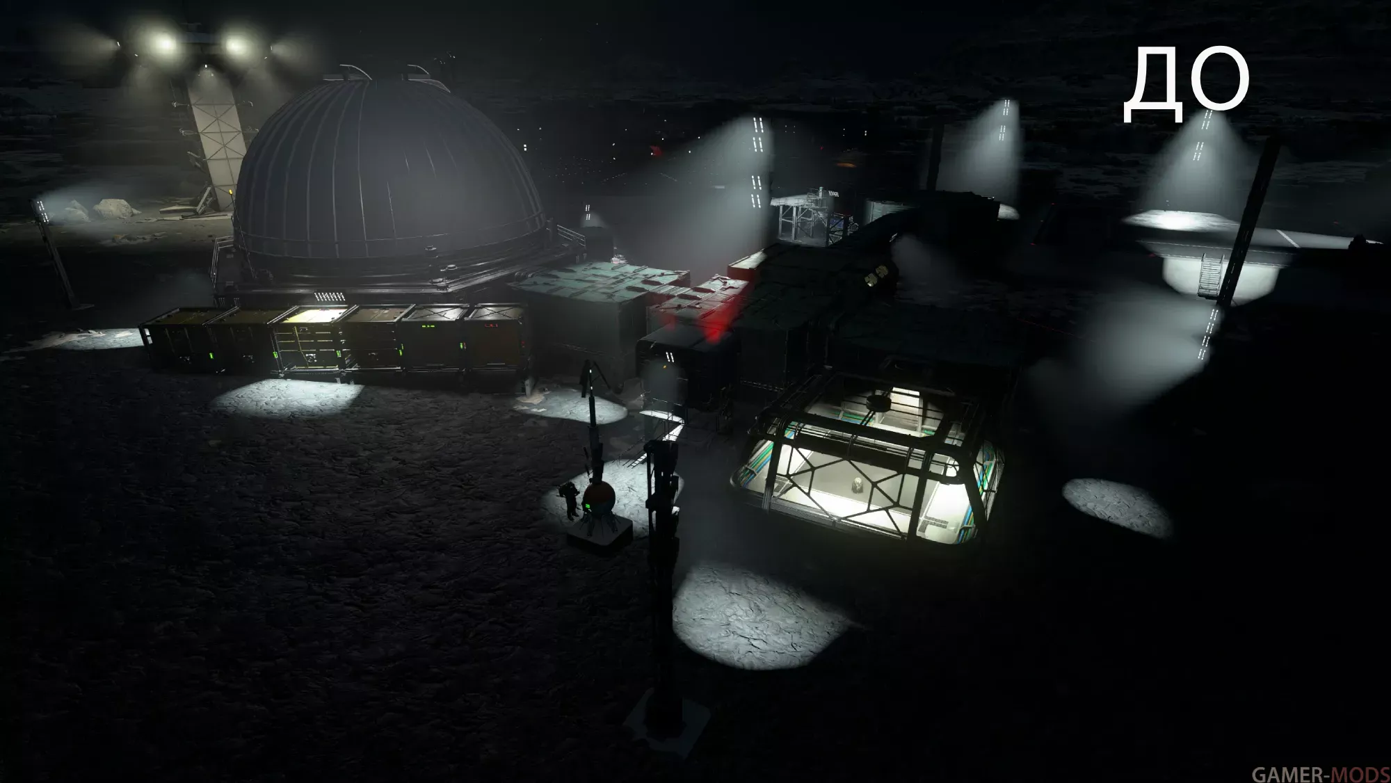 Освещение игровых аванпостов в игре Starfield сосредоточено на небольшой площади и слишком яркое. Этот мод меняет это и делает освещение ванильных аванпостов более полезным и захватывающим. SOL постарается улучшить вид ваших аванпостов в ночное время. Если вы, как и я, предпочитаете строить аванпосты на планетах с очень медленным вращением (где ночь длится более месяца), то вы оцените этот мод. Вам понадобится меньше световых столбов, а видимость увеличится. Это беспроигрышный вариант!