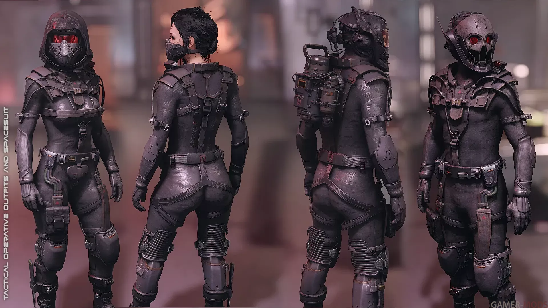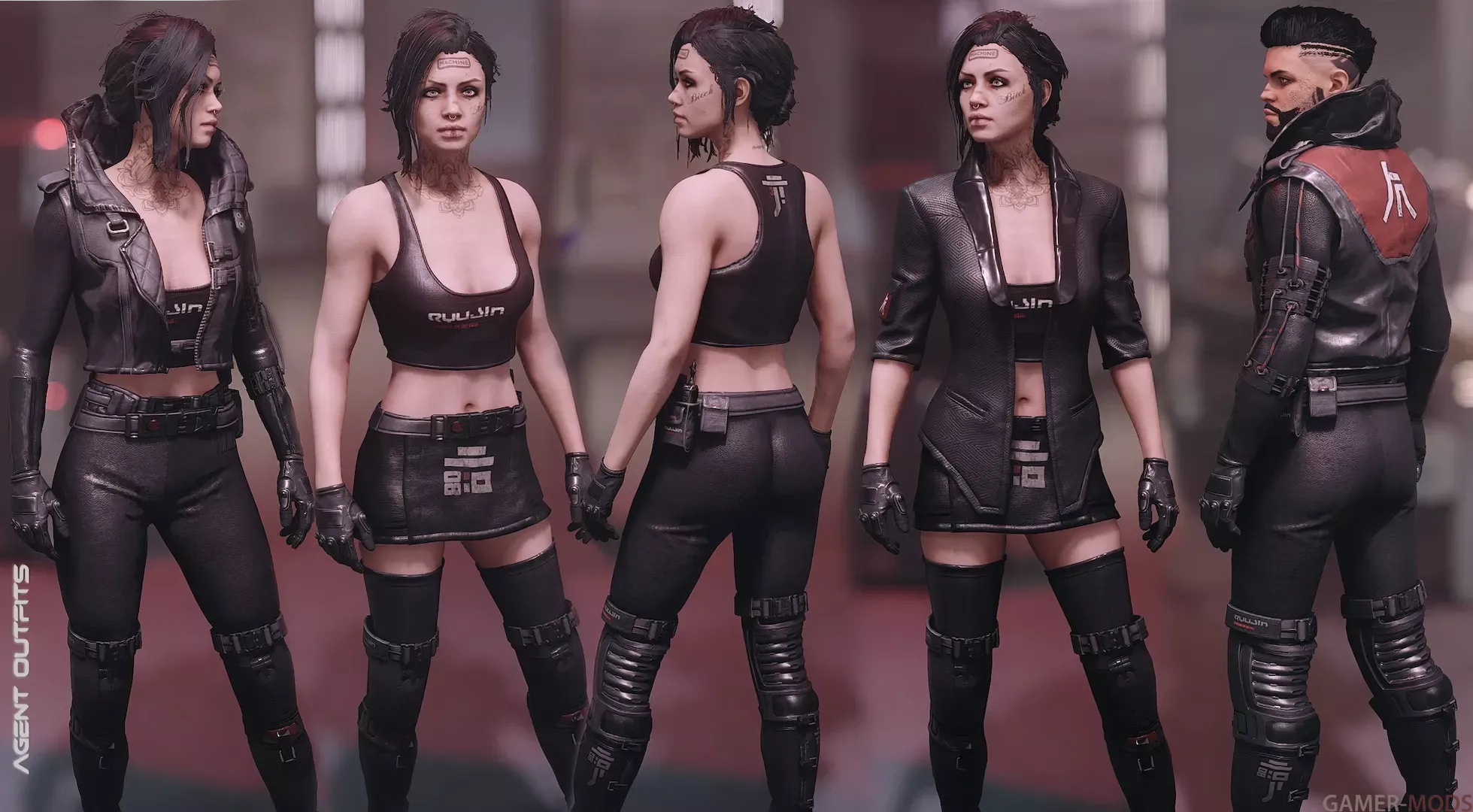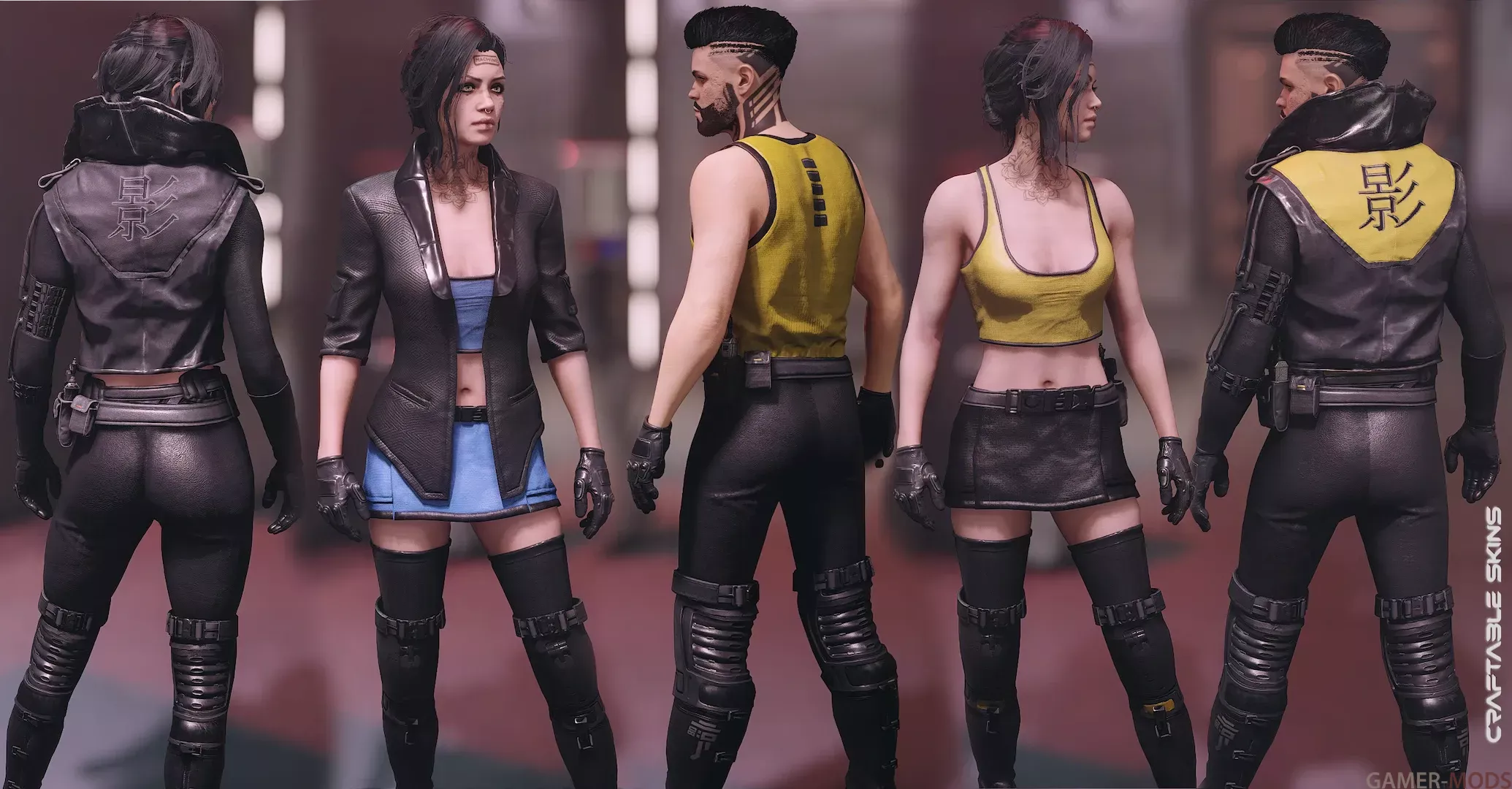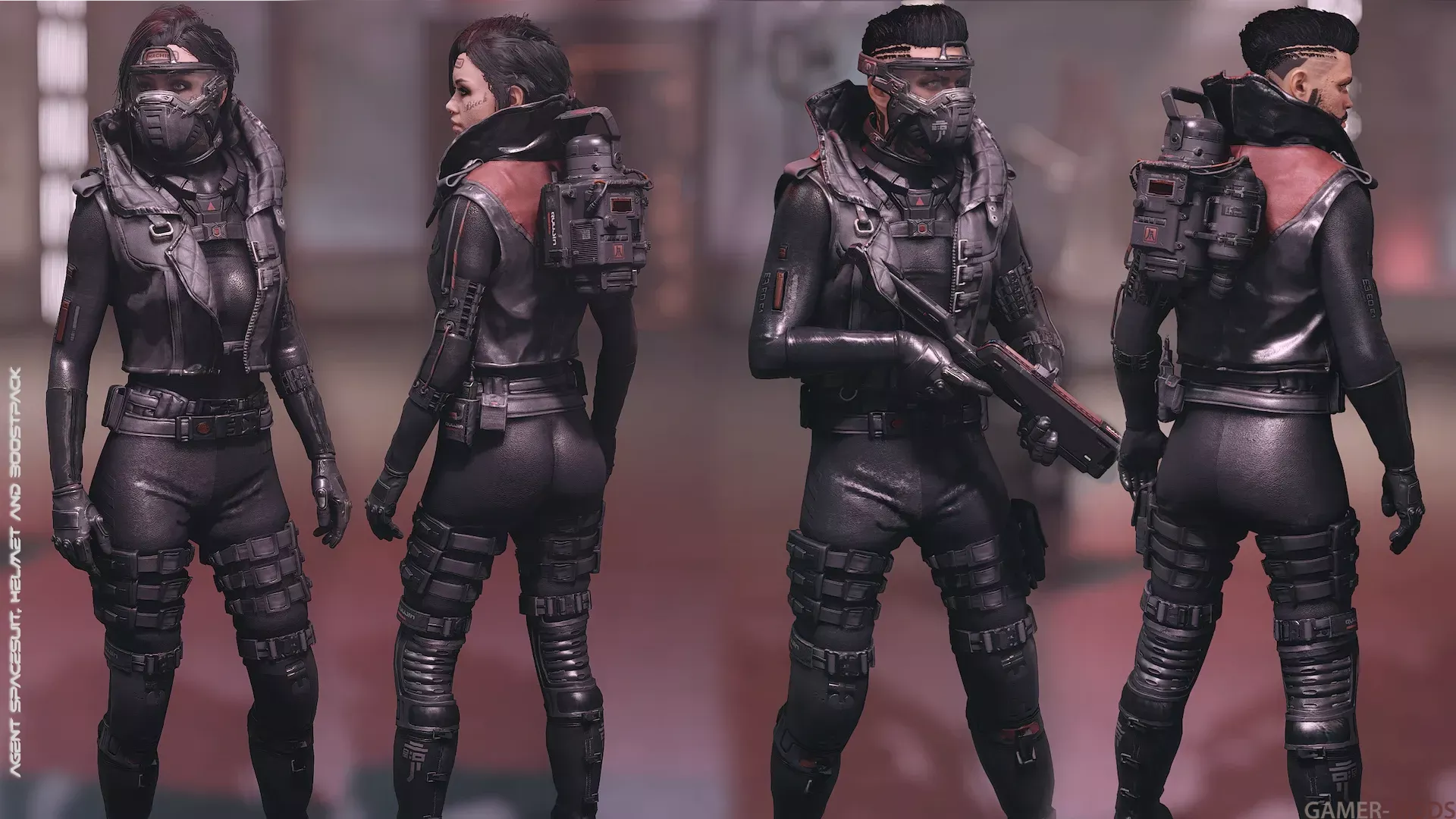 Костюмы «Корпо» предназначены для женских персонажей, мужская модель — заглушка. Для этих костюмов доступны ванильные скины, которые можно создать.
