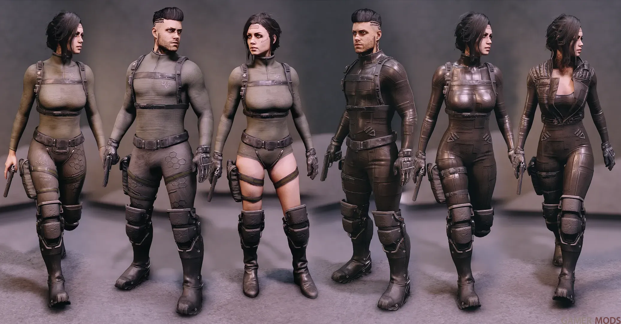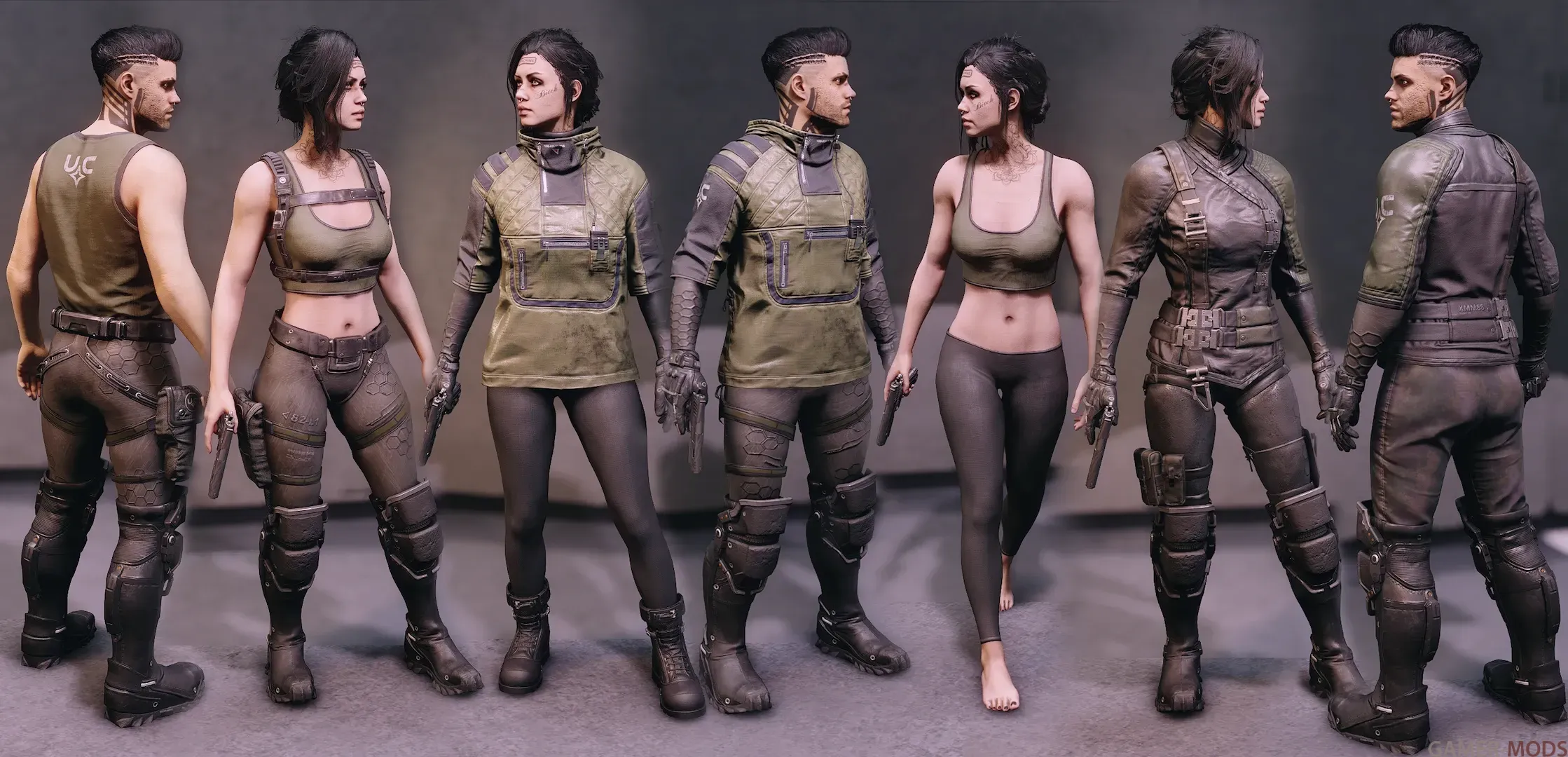 Установите любой мод на текстуры обнаженного тела, как показано на картинках с одеждой, чтобы удалить стандартное нижнее белье, например: текстуры "Starqueen" (https://www.nexusmods.com/starfield/mods/6293). Это необязательно, работает нормально и без них.