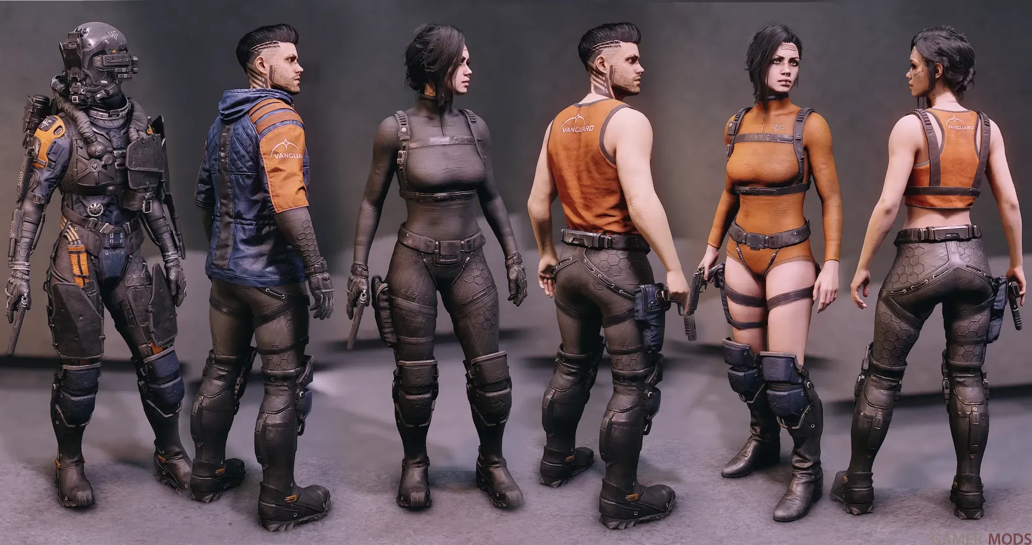 Добавляет в игру Starfield скафандры, джетпак, шлемы, костюмы и дополнительные скины в стиле ОК (Объединенные колонии).