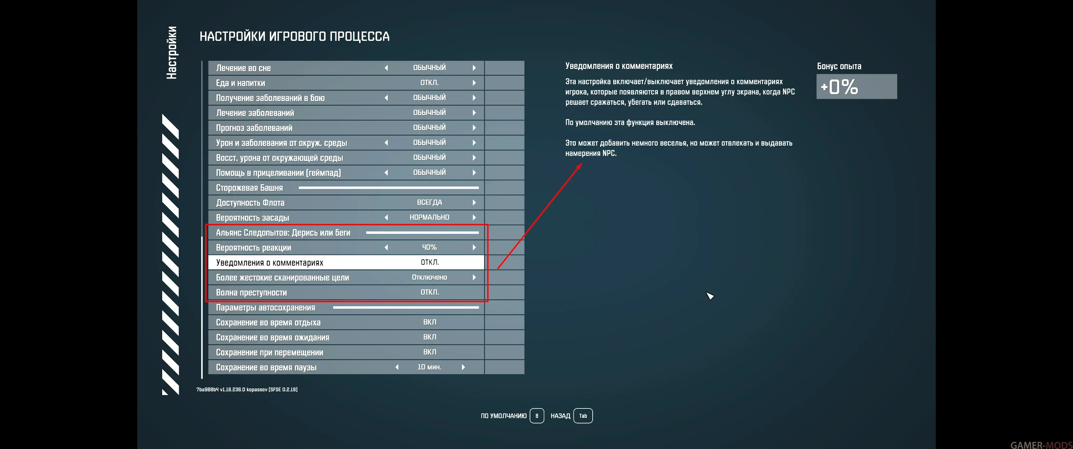 Доступны следующие параметры игрового процесса: