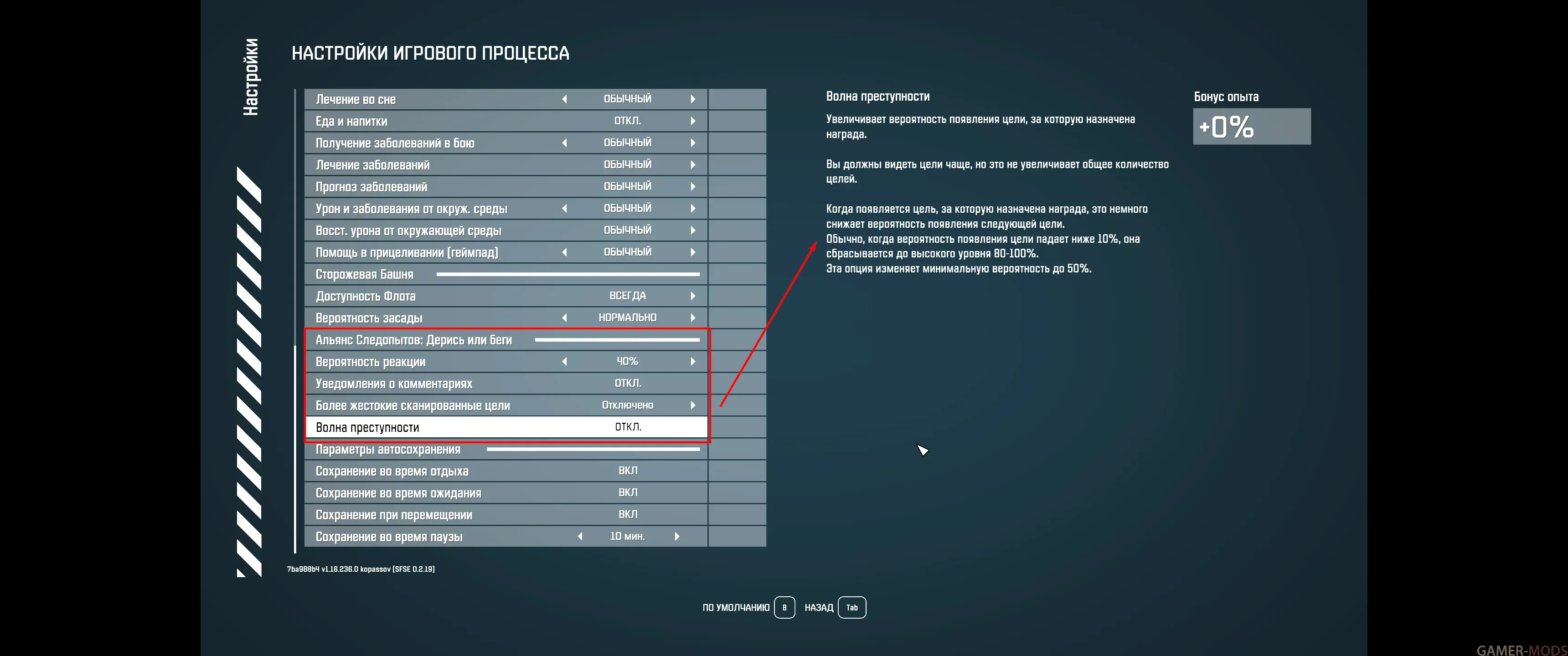 Волна преступлений: по умолчанию ВЫКЛ