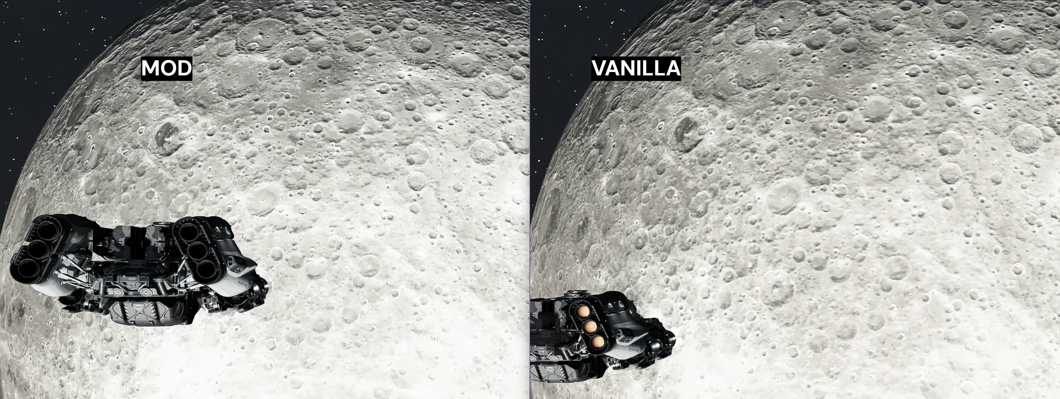 Этот мод полностью перерабатывает текстуры всех планет в Starfield, видимых из космоса, предлагая более чёткие и детализированные изображения и значительно улучшенную эстетику. Каждая планета теперь выглядит более захватывающей и впечатляющей при просмотре с орбиты. Использует файлы BA2 и небольшой плагин ESM для максимальной эффективности. Оптимизирован для чёткости изображения без потери FPS. Безопасно устанавливать и удалять в любое время.