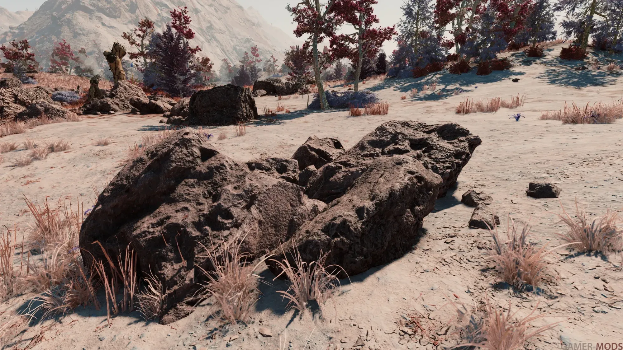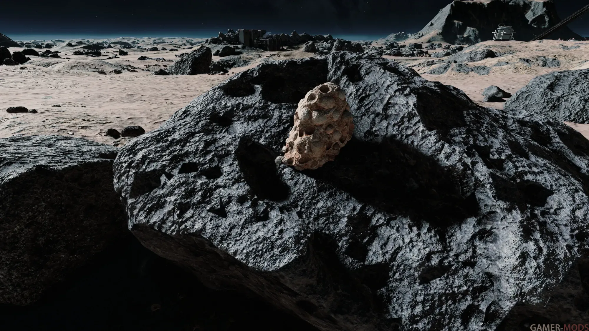 Улучшает качество текстур камней как наземных планетных, так и в космосе астероидных камней и многое другое. Размер текстур такой же как в оригинале игры, но качество лучше.