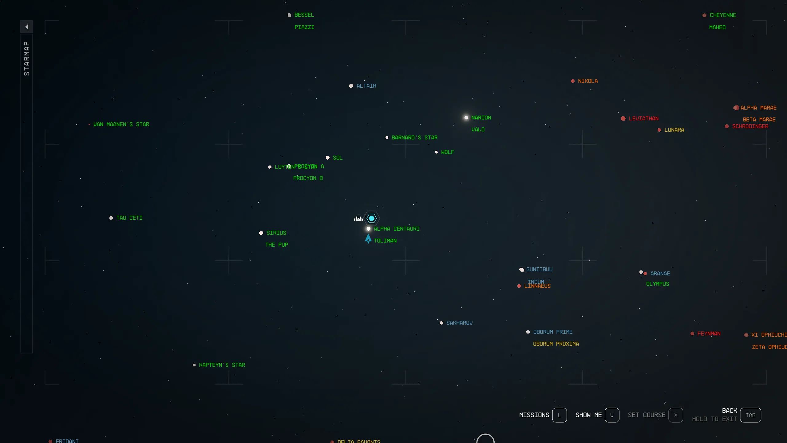 Имена будут ненадолго скрыты при выборе системы, расположенной друг над другом (например, Нарион + Вало)
