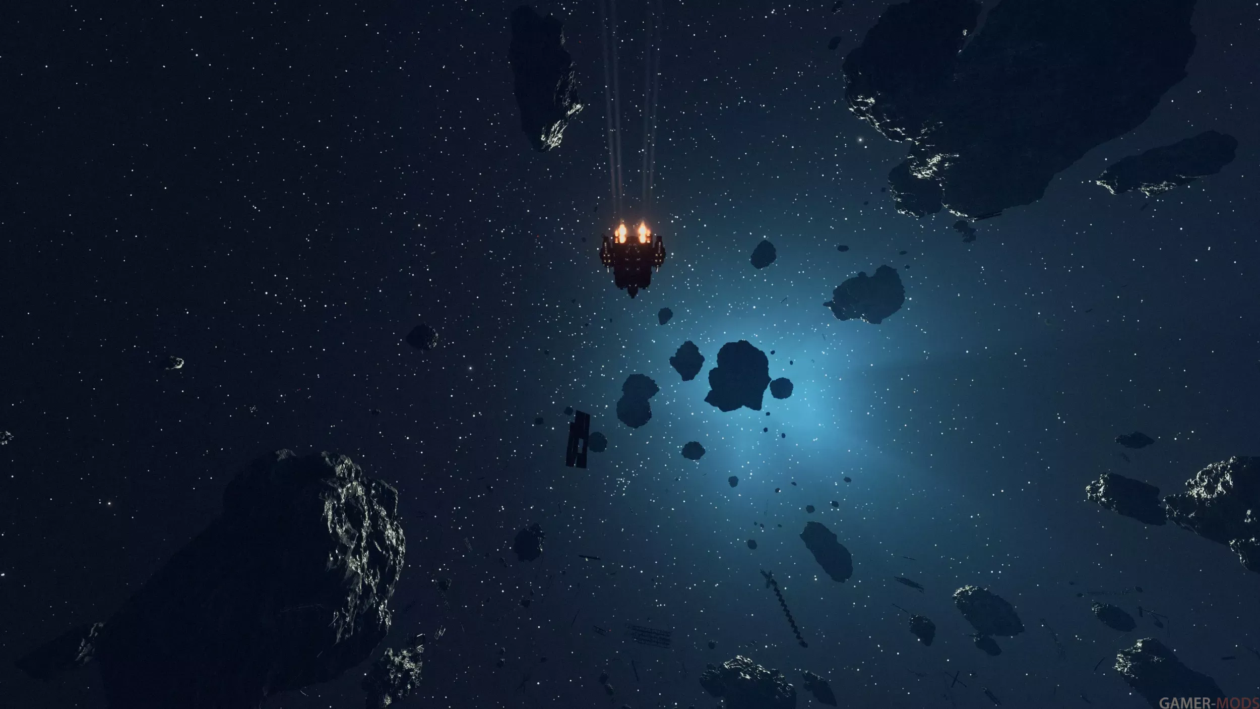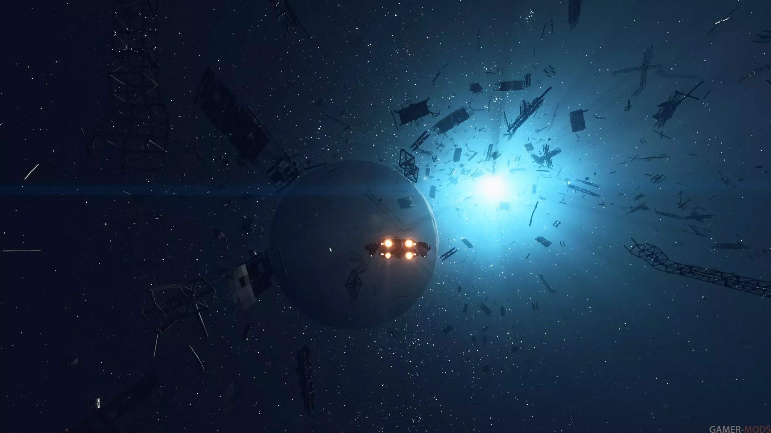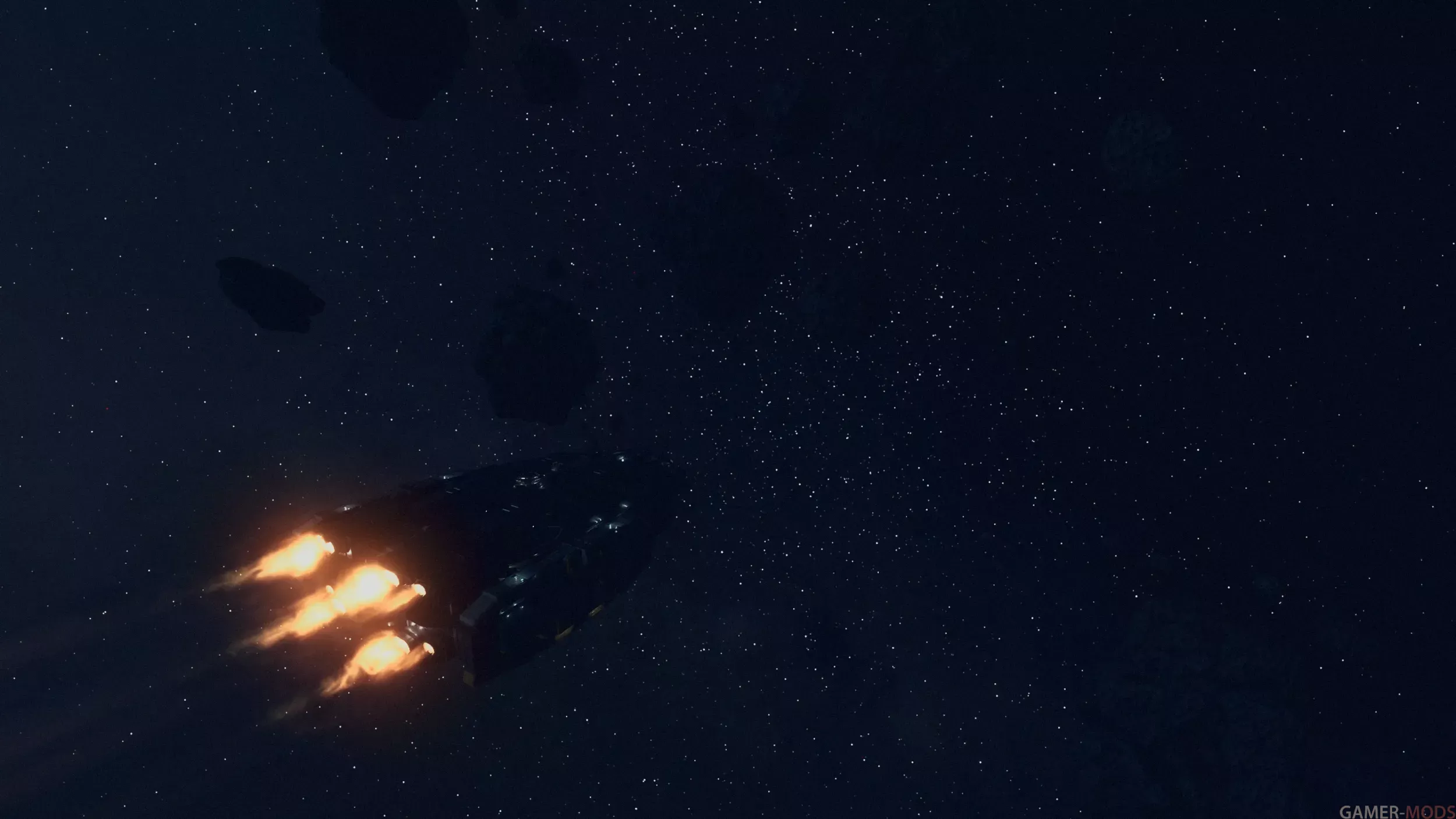 Этот мод создает более глубокую и захватывающую межзвездную среду за счет значительного уменьшения непрямого освещения в космосе, что приводит к появлению естественных темных теней на затененных сторонах планет. Он также отключает частицы пыли и облака, которые появляются перед камерой, обеспечивая игрокам более кинематографичный эффект "настоящей пустоты" с насыщенным черным цветом и отсутствием визуальных отвлекающих факторов. Кроме того, экспозиция камеры в космосе уменьшена на один кадр, благодаря чему белые корабли не кажутся слишком яркими.