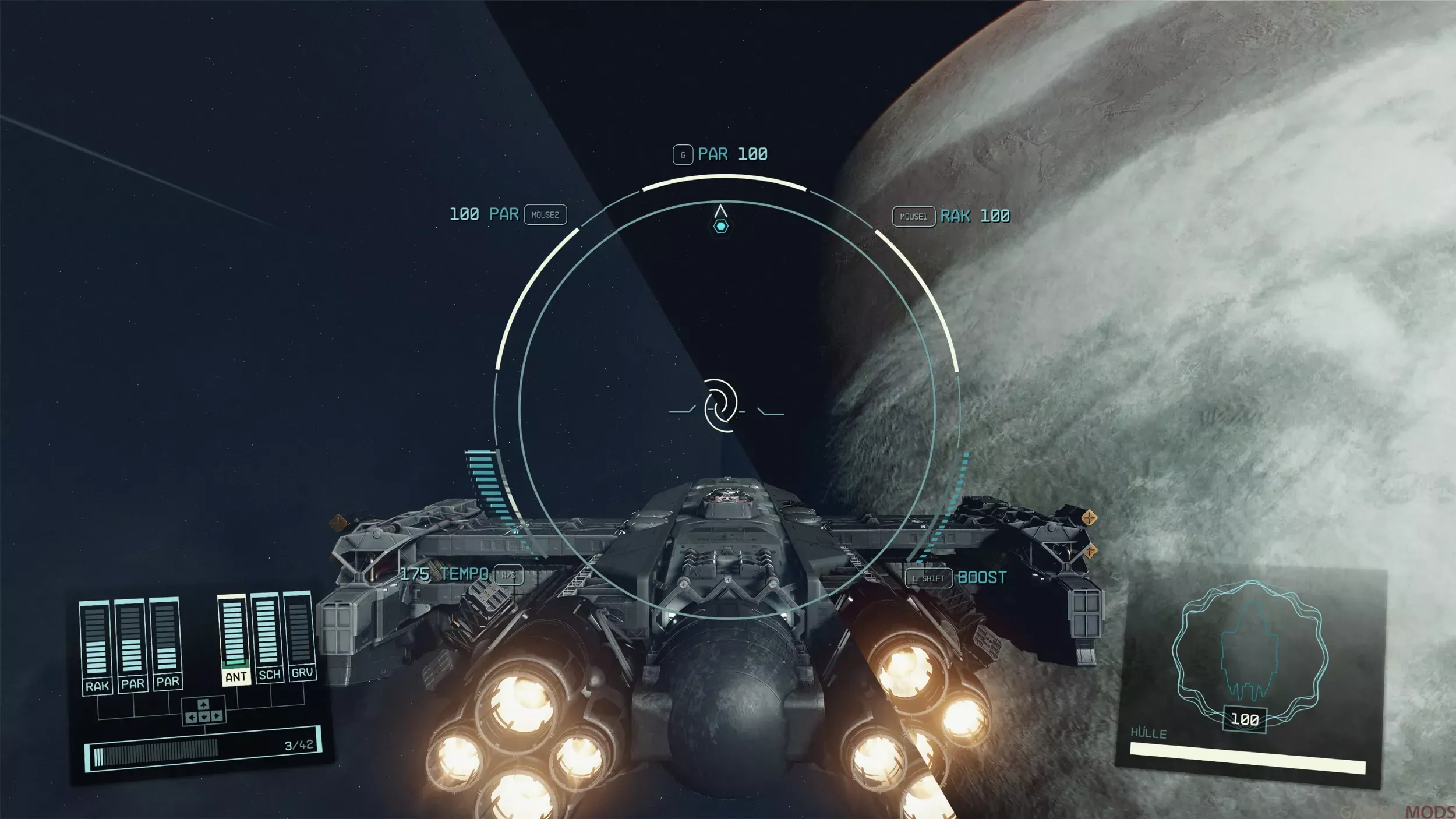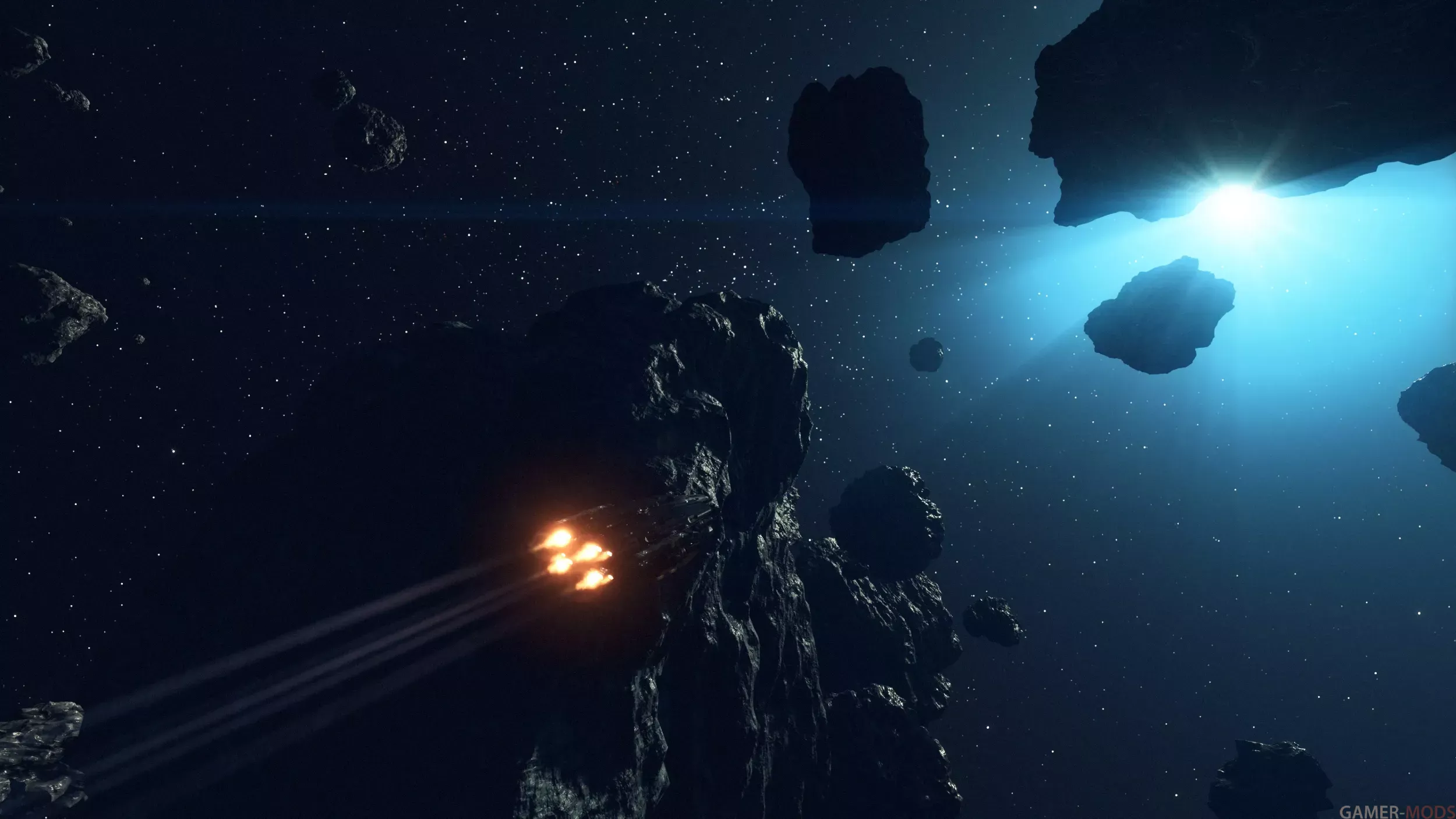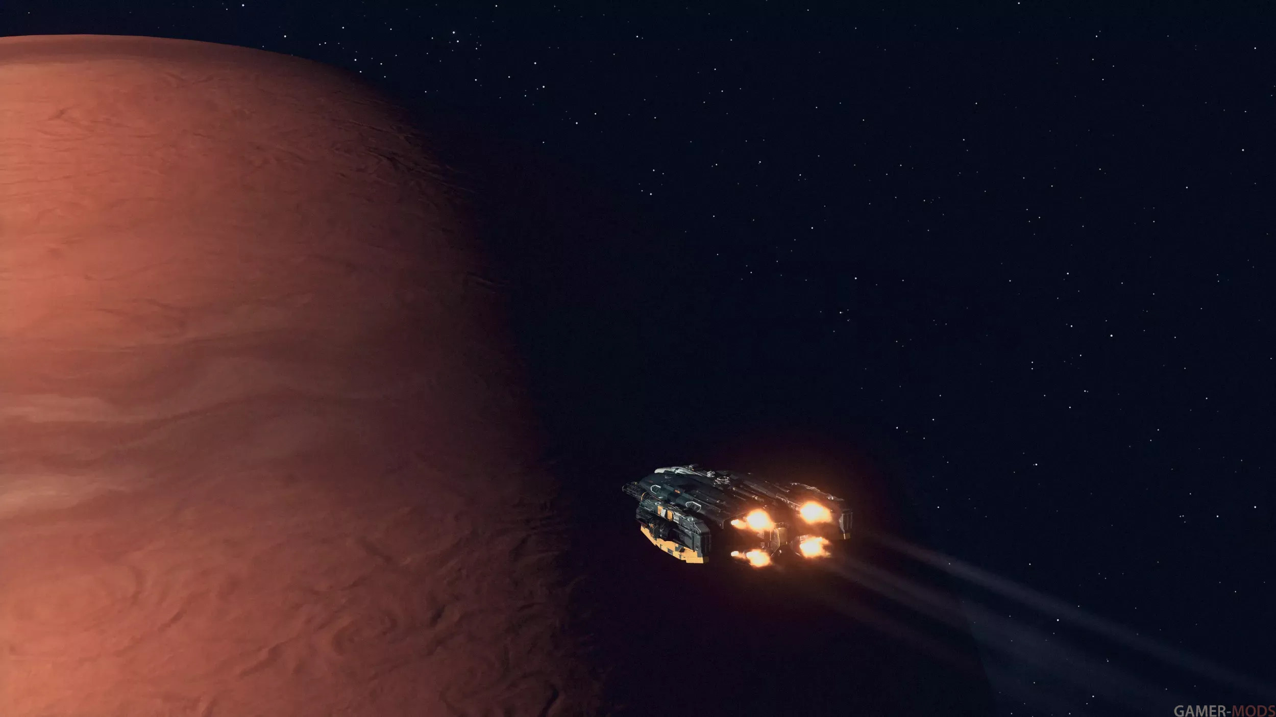 Этот мод создает более глубокую и захватывающую межзвездную среду за счет значительного уменьшения непрямого освещения в космосе, что приводит к появлению естественных темных теней на затененных сторонах планет. Он также отключает частицы пыли и облака, которые появляются перед камерой, обеспечивая игрокам более кинематографичный эффект "настоящей пустоты" с насыщенным черным цветом и отсутствием визуальных отвлекающих факторов. Кроме того, экспозиция камеры в космосе уменьшена на один кадр, благодаря чему белые корабли не кажутся слишком яркими.