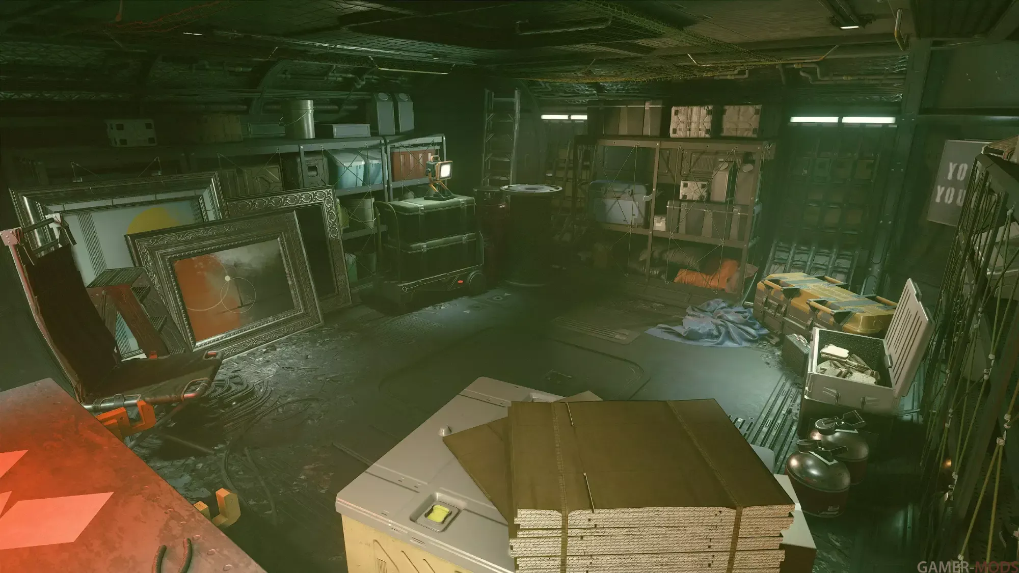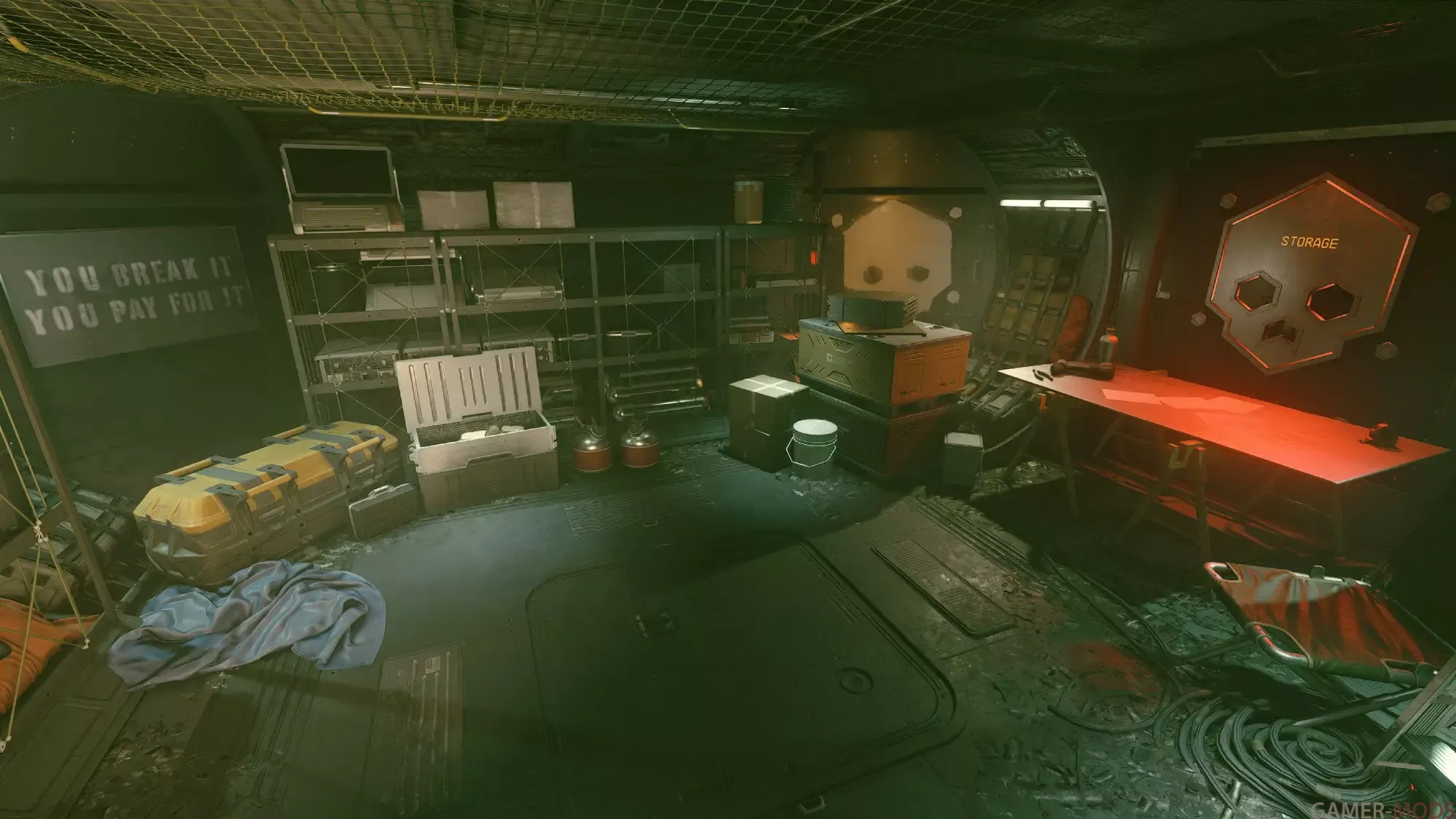 Оружейная комната (+400 единиц груза) 1 х 1 Небольшая оружейная комната со стеллажами для выставки товаров, манекенами, оружейными шкафами и универсальным хранилищем.