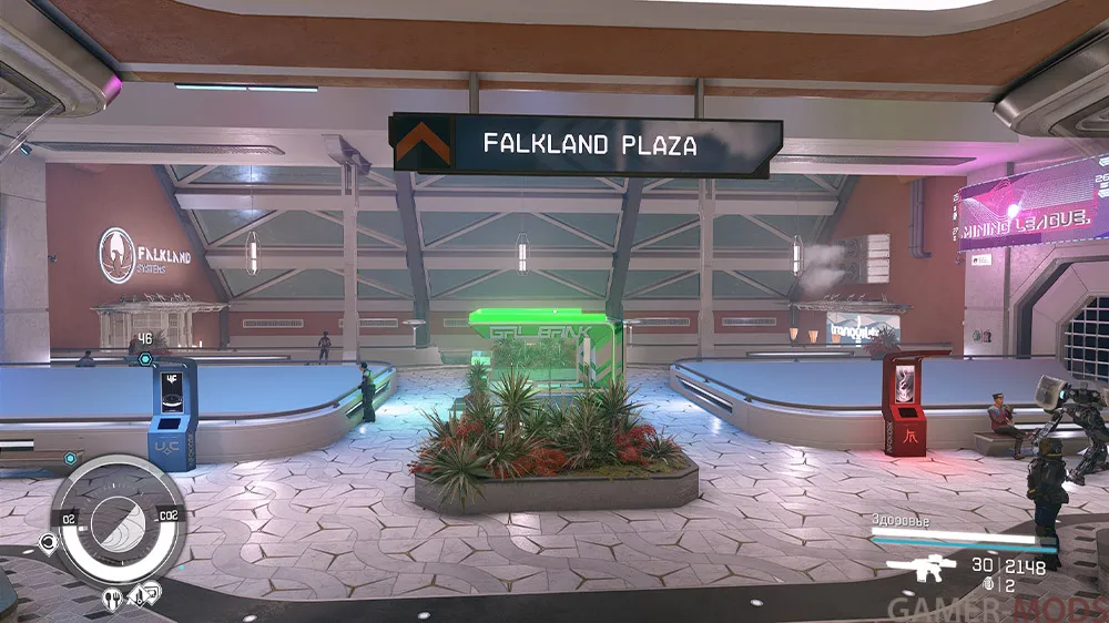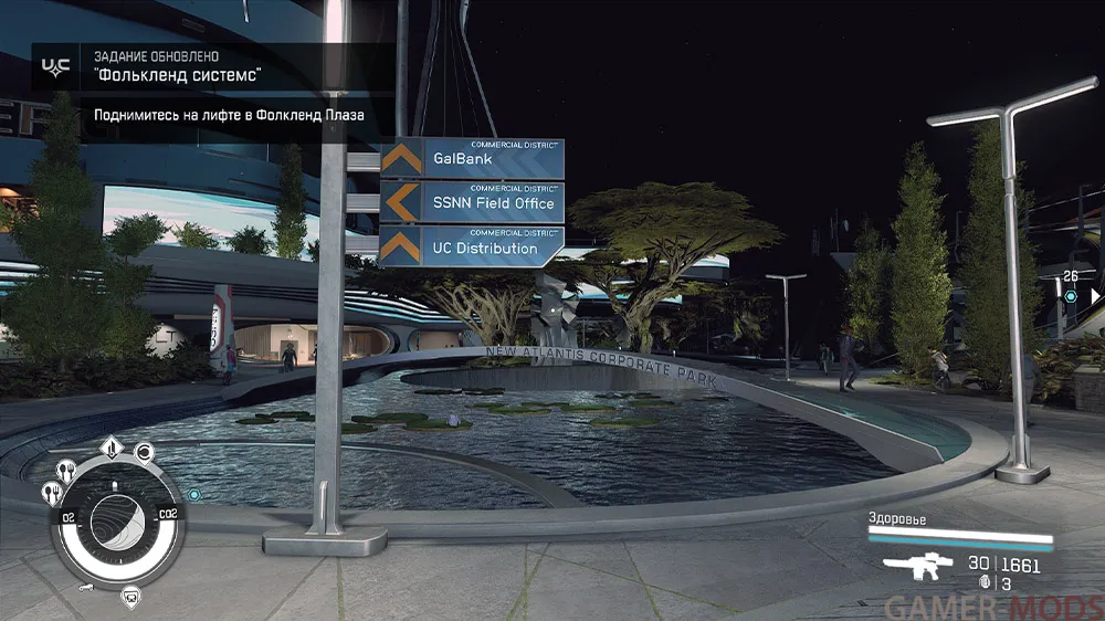 Отправляйтесь в коммерческий район Новой Атлантиды (Система Альфа Центавра, Планета Джемисон), где справа от станции NAT (поезд ТОНА) вы найдете новое здание. Лифты внутри доставят вас вниз на Фолкленд Плаза, где вы сможете осмотреть выставочный зал Фолькленд Системс. Также в творении есть квестовый маркер, который можно активировать, приземлившись в космопорте, быстро переместившись в коммерческий район или подойдя непосредственно к новому зданию.