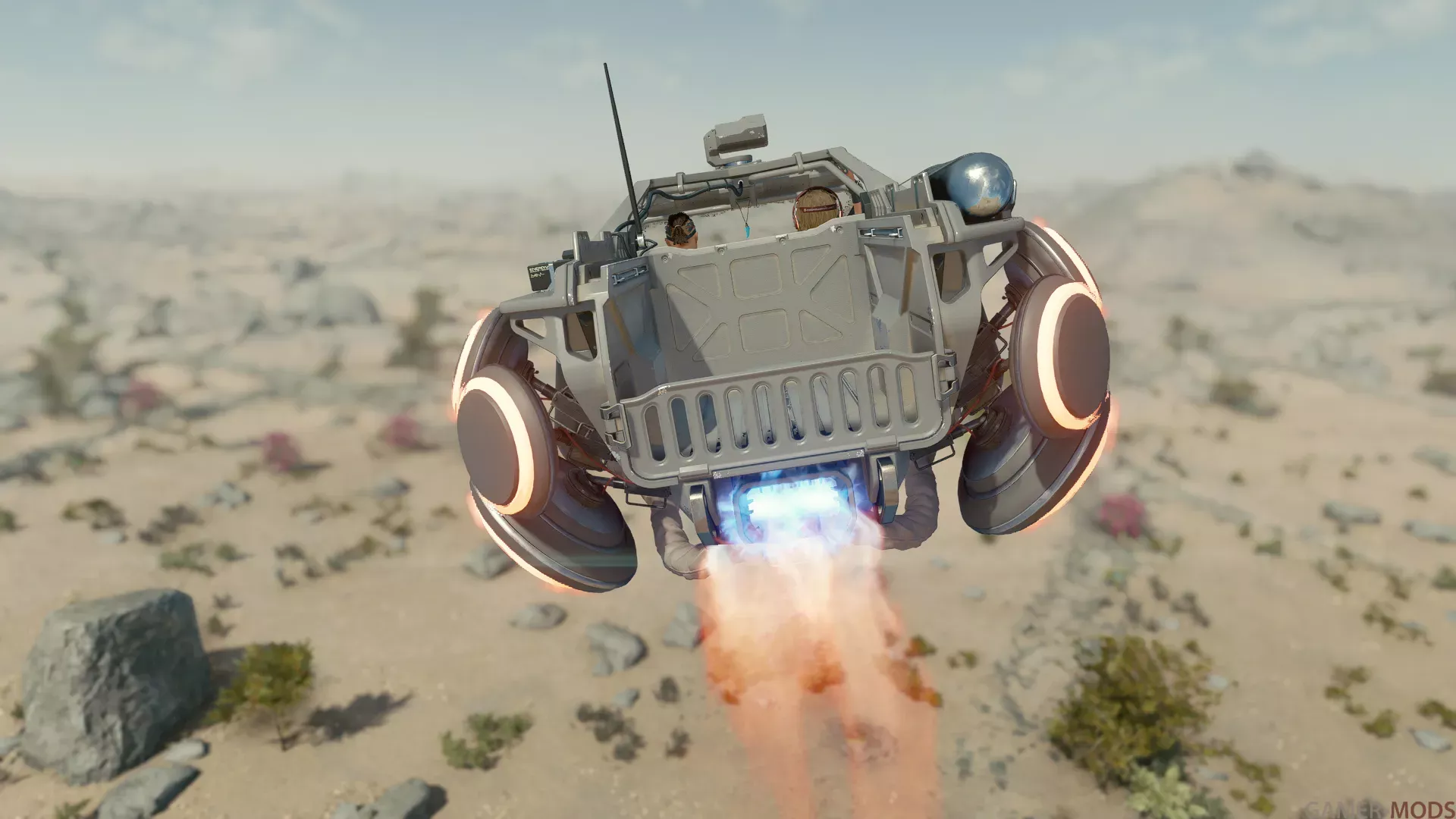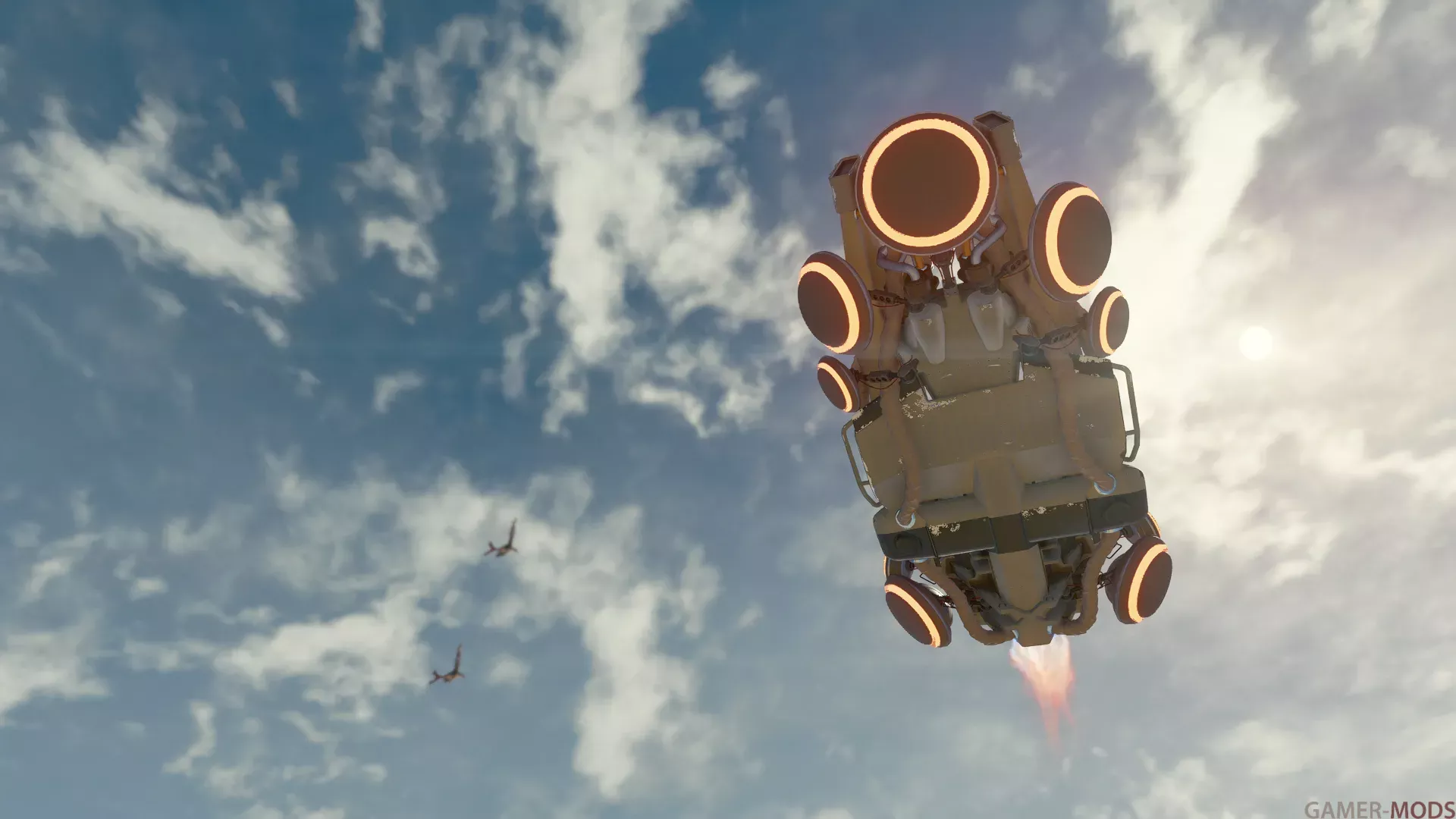 Добавляет в игру новое автономное транспортное средство. Добавляет возможность передвигаться как по земле, так и по небу. Увеличивает урон лазерной турели. (Только для GRAV-79)
