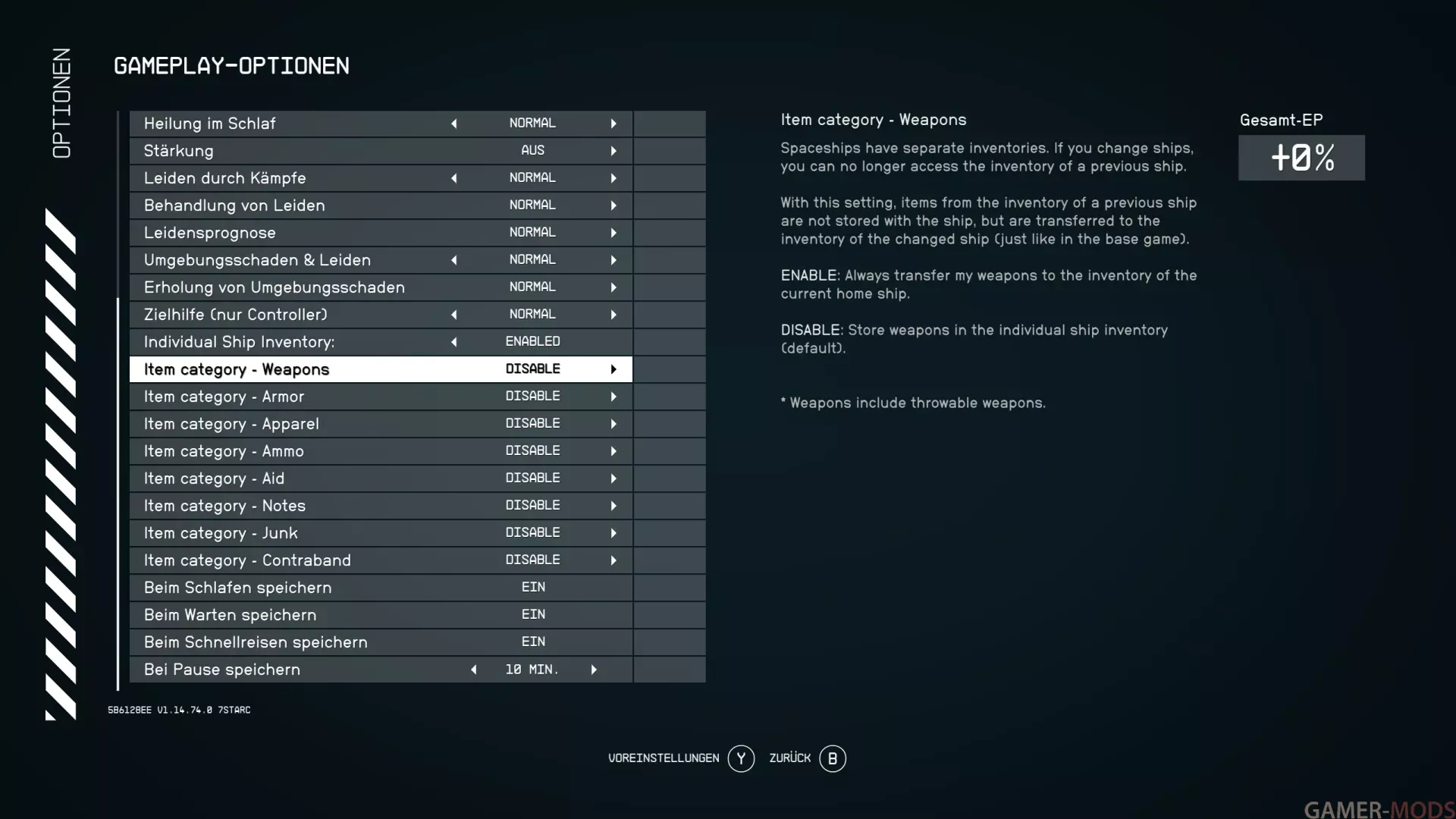 Инвентарь отдельных кораблей можно включать и выключать, а также настраивать в настройках игрового процесса.