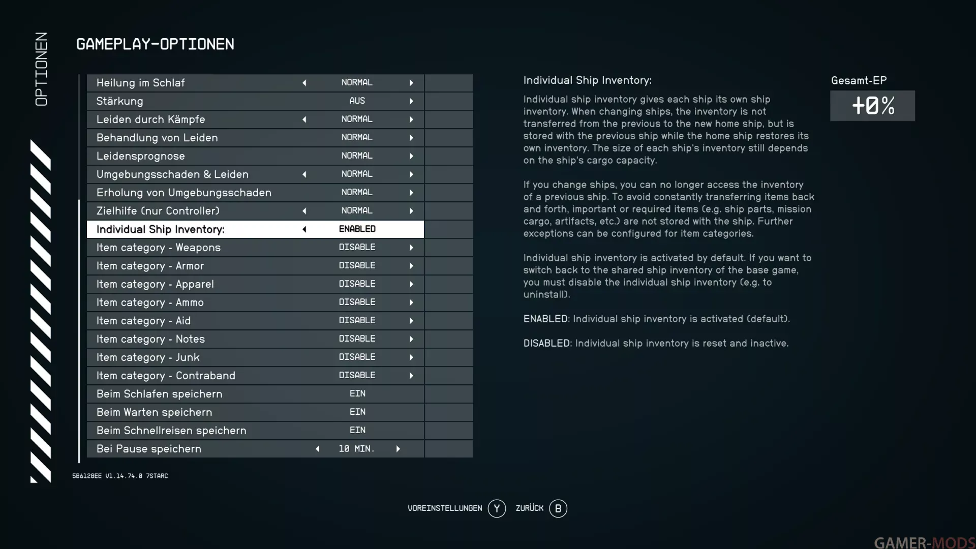 У каждого корабля есть свой собственный инвентарь, который сохраняется или восстанавливается вместе с кораблем при смене основного корабля.