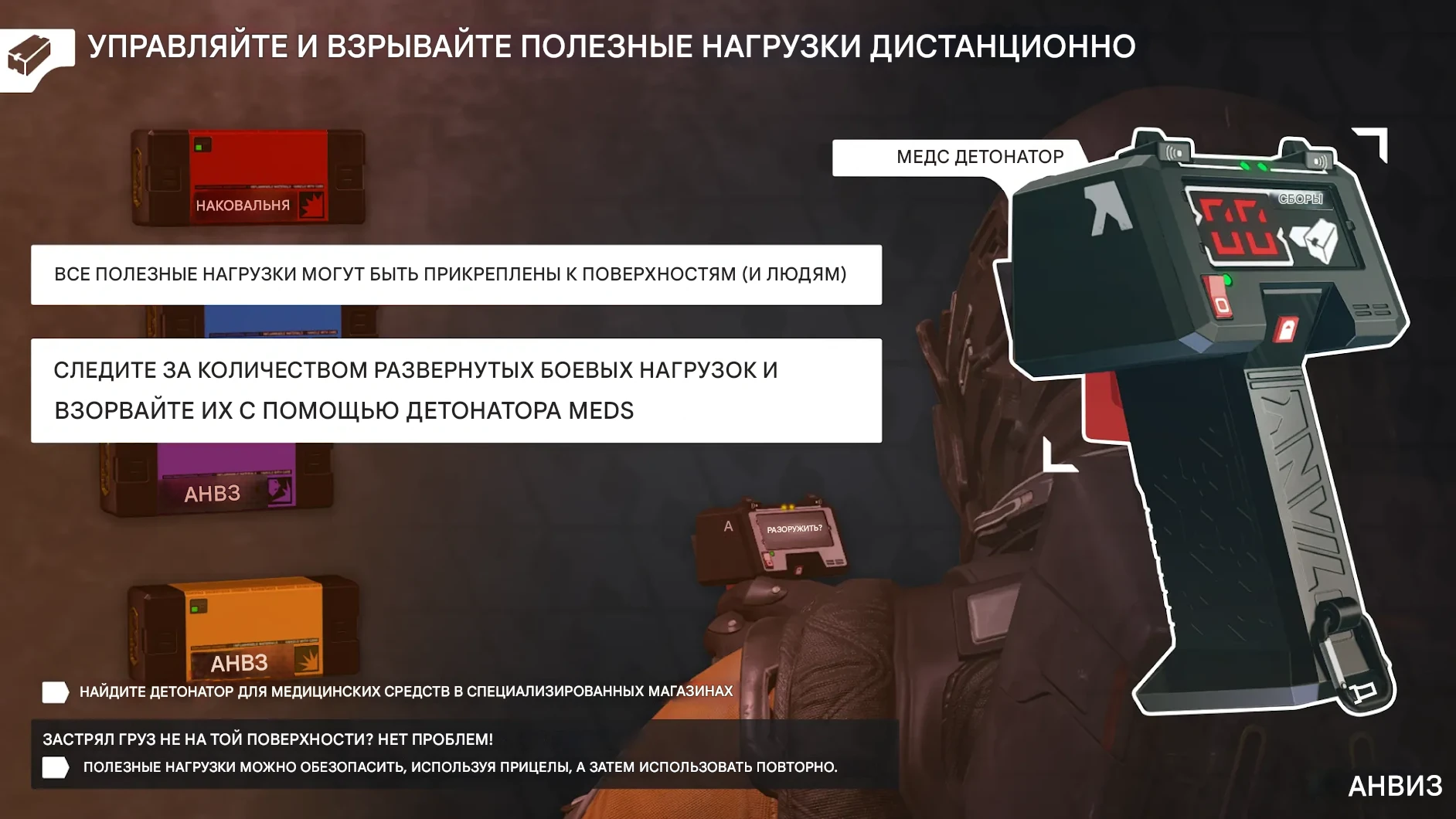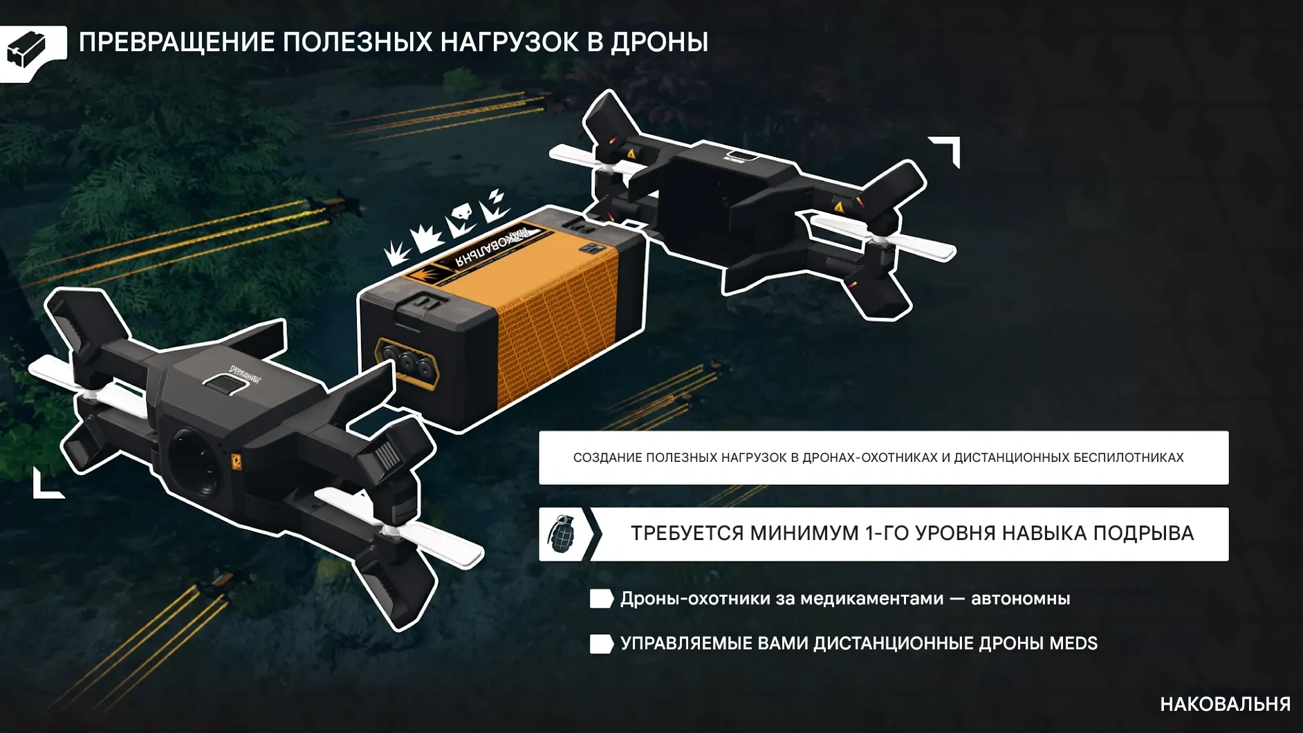 Модульная система доставки взрывчатых веществ (МСДВ) позволяет использовать дистанционно подрываемые взрывчатые вещества, автономные ударные дроны и опыт полетов на дронах с видом от первого лица в освоенных и неизведанных системах!