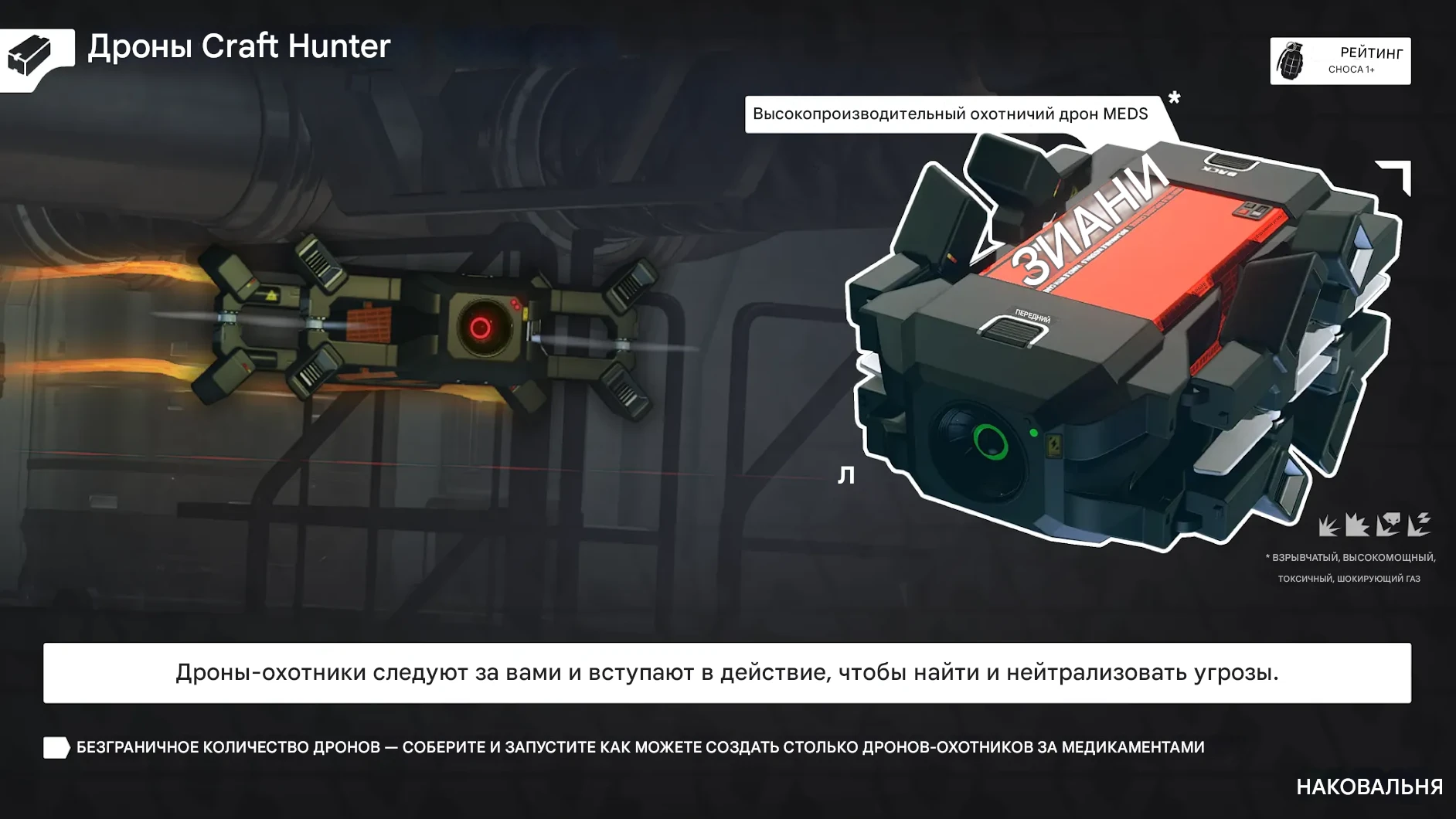 Изначально разработанные для промышленных раскопок и оборонительных операций, комплекты МСДВ с тех пор нашли применение в гораздо более опасных целях. Во время нападений Багрового флота операторы дронов координируют действия роев, чтобы защитить свои экипажи и вытеснить цели из укрытий. Снайперы-космонавты, тем временем, наблюдают издалека, терпеливо отстреливая отставших, в то время как операторы дронов используют дроны для атаки с низкой высоты, чтобы беспокоить, дезориентировать и уничтожать противника. Когда небо наполняется гулом лопастей, уже слишком поздно.