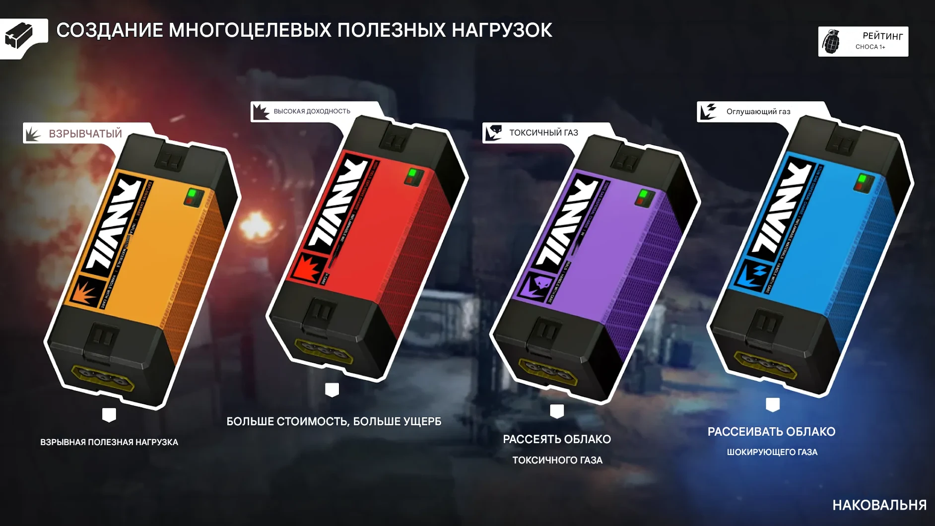 > Токсичный газ – наносит постоянный урон в течение длительного времени посредством токсичного пылевого облака, которое оставляет стойкий осадок на окружающей среде и целях.