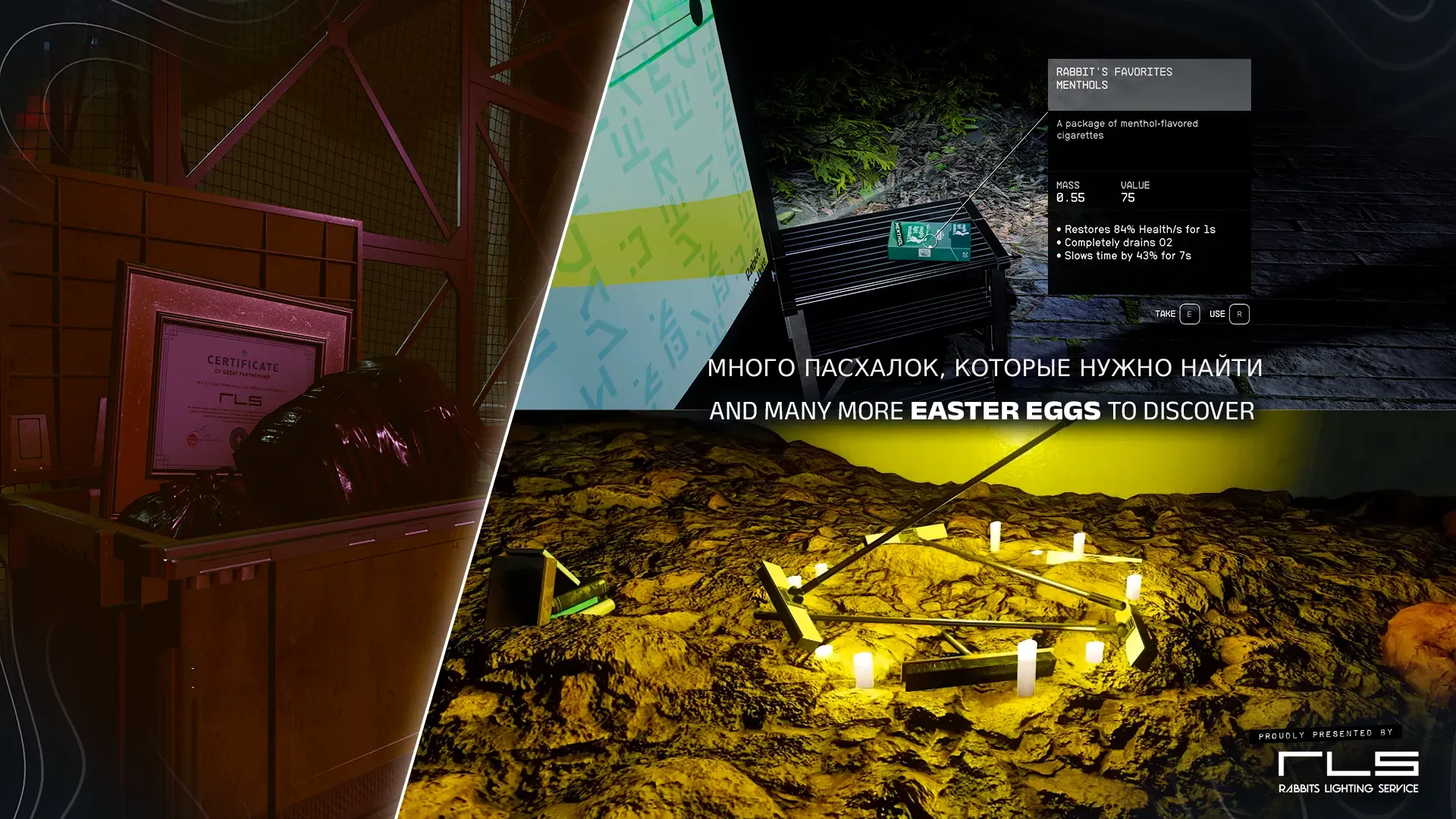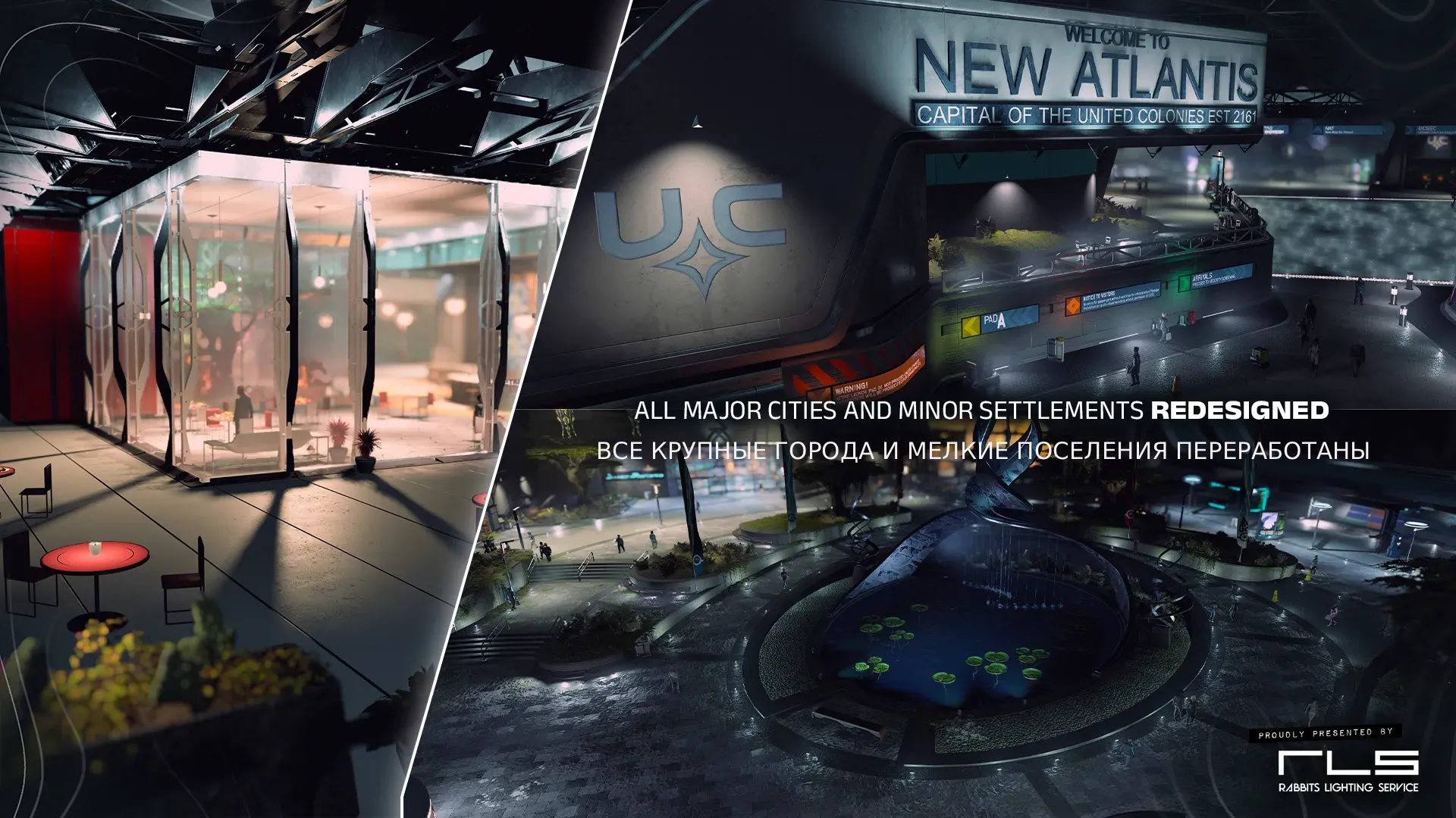 Этот мод заменяет "фальшивое", непоследовательное наружное освещение, улучшает существующие локации и добавляет более 15000 вручную размещенных источников света и элементов окружения, не нарушая оригинального художественного стиля игры. Каждая крупная локация и каждое небольшое поселение переработаны с упором на реализм, дизайн освещения и визуальное повествование с использованием пользовательских текстур и материалов. Помимо переработки освещения, этот мод представляет внутриигровой бренд Rabbit’s Lighting Service (RLS) как небольшую сюжетную линию, вплетенную в аудиозаписи, реквизит и квесты.