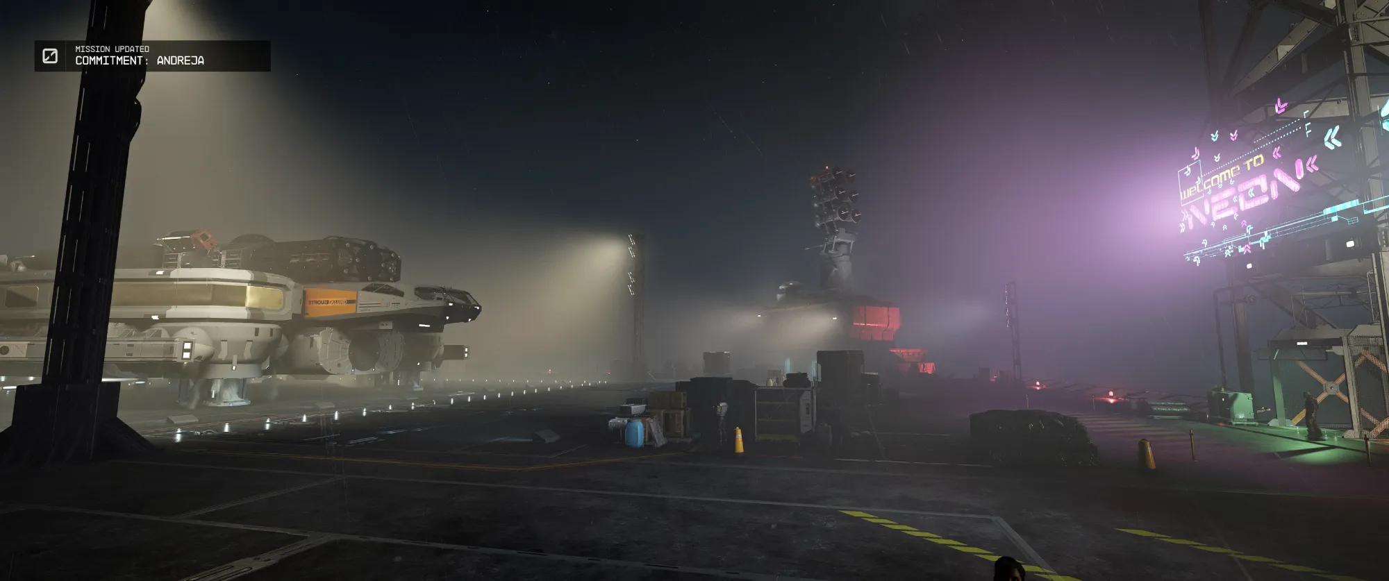 ИНФОРМАЦИЯ: Начните сюжетную линию, отправившись в космопорт Новой Атлантиды. Проверьте задание "Да будет свет" в журнале, отметьте его. Далее следуйте указаниям. Чтобы забраться на леса проявите смекалку.