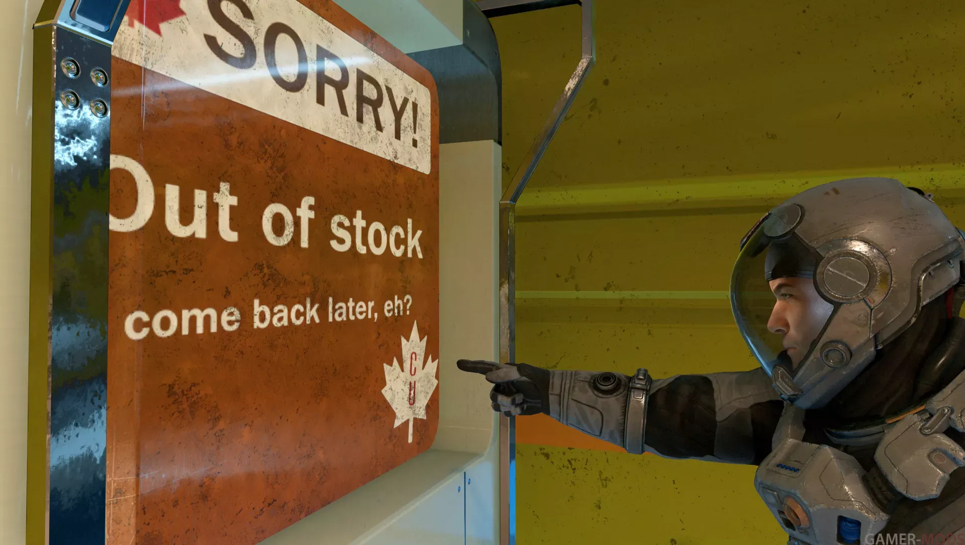 Вместо того, чтобы брать (покупать) предметы, вы также можете ударить по торговому автомату. Удар по торговому автомату считается преступлением и привлечет охрану, которая находится поблизости. Предметы, выпавшие из торгового автомата, будут помечены как украденные. Существует вероятность того, что при ударе по торговому автомату он выйдет из строя, что приведет к появлению экрана "Не работает".