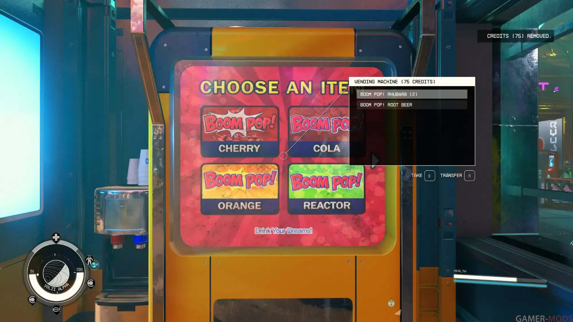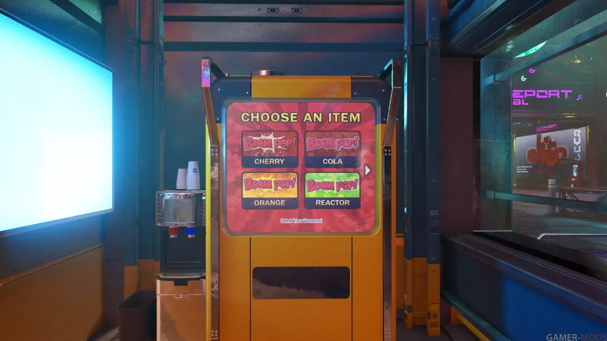 Когда вы подходите к торговому автомату и активируете его, вы теперь увидите экран выбора товаров и сможете выбирать товары в торговом автомате, используя пользовательский интерфейс быстрого меню.