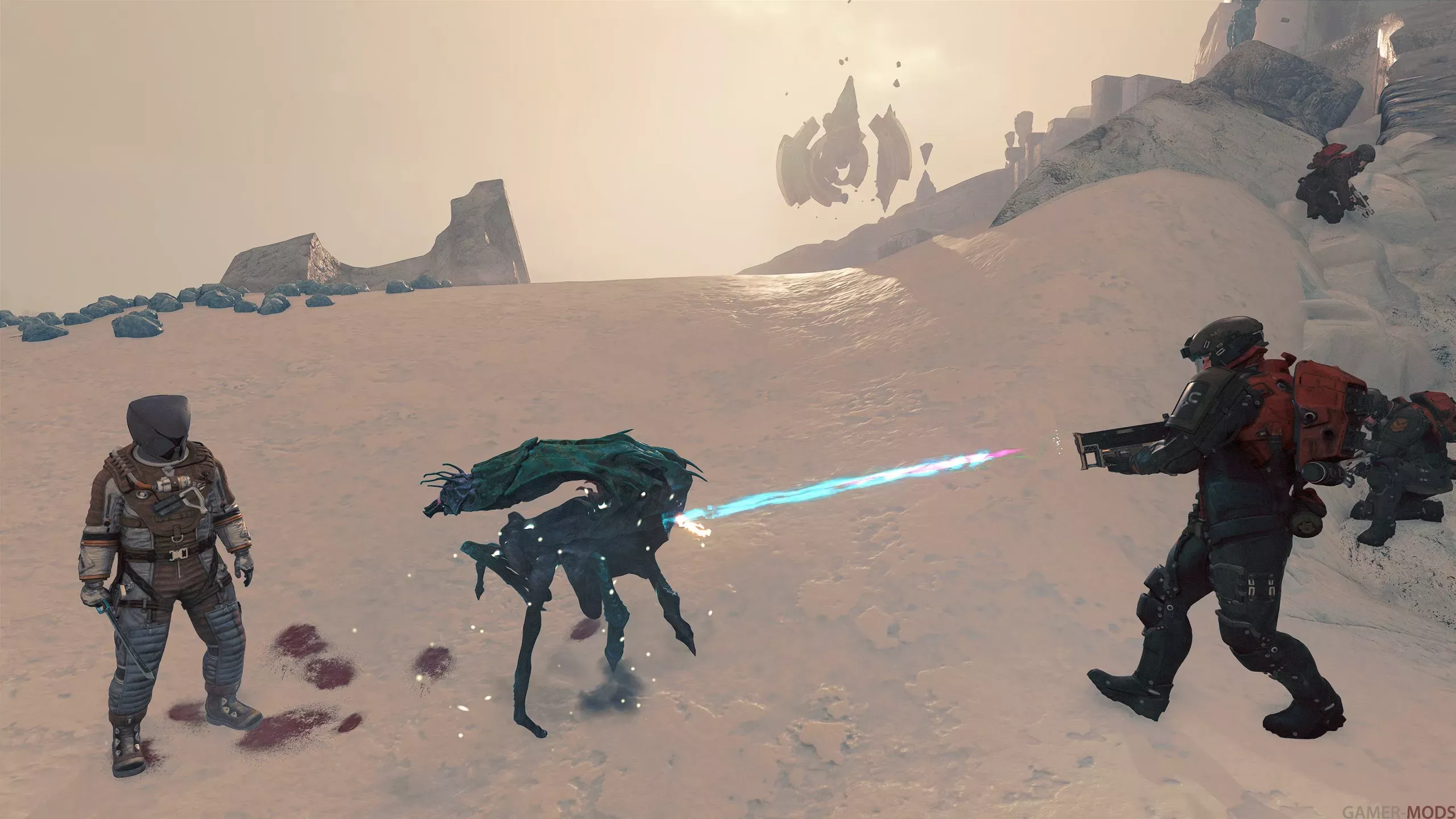 Или просто мирный авангардный патруль, зарытых в землю монстров, безжалостных роботов-убийц - никогда не знаешь, что их там поджидает. Композиция сражений полностью динамична. Не привязан к конкретному объекту, планете или спутнику - это происходит везде, в открытом доступе, за пределами центров поиска объектов/миссий. Более чем на тысяче планет и спутников.