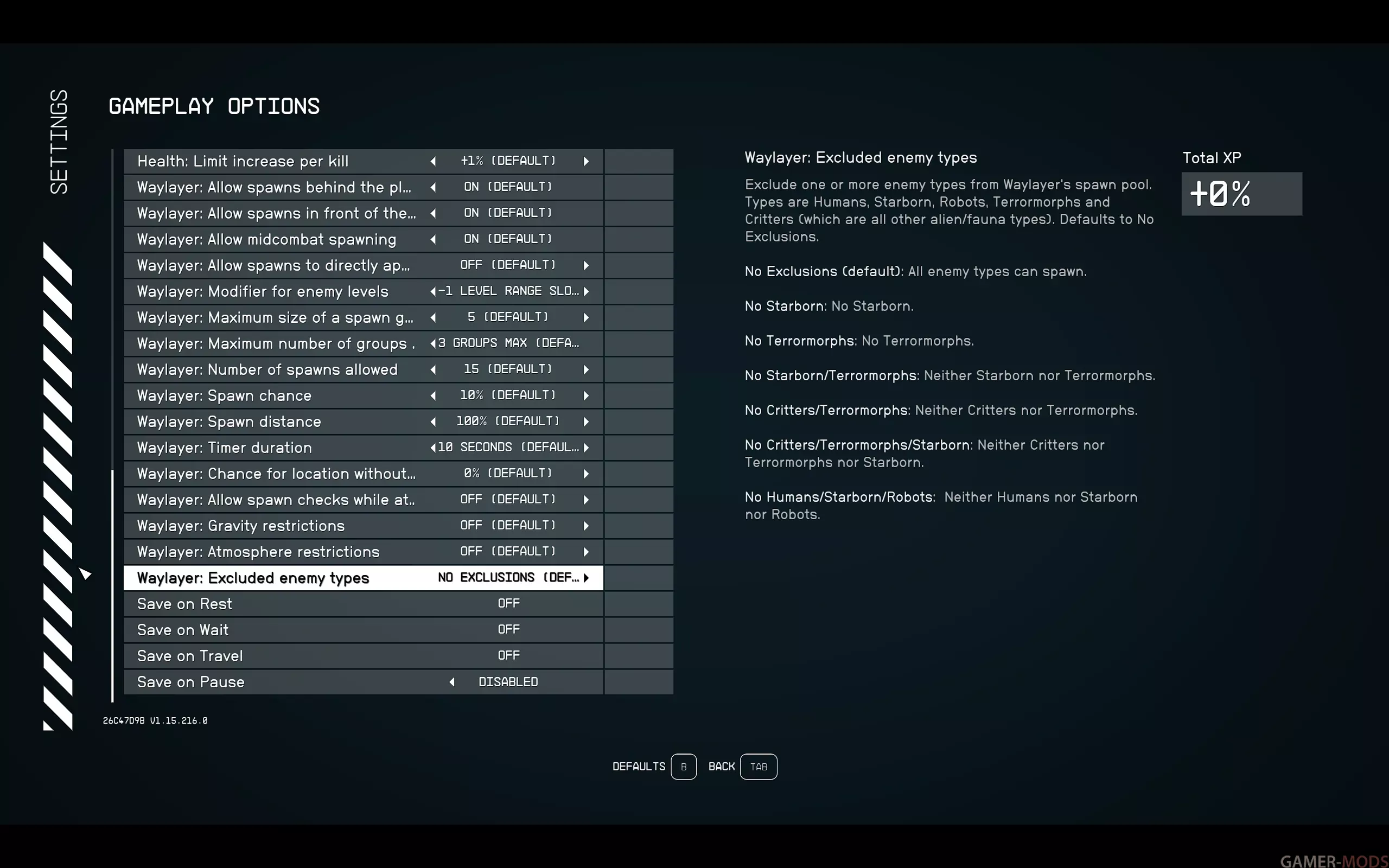 Вы можете легко настроить следующие 16 параметров по своему вкусу, которые добавлены в меню параметров игрового процесса Starfield.