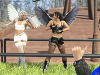 После фотосессии меняет парик, складывает крылья, и... и... и жуткие вещи творит!